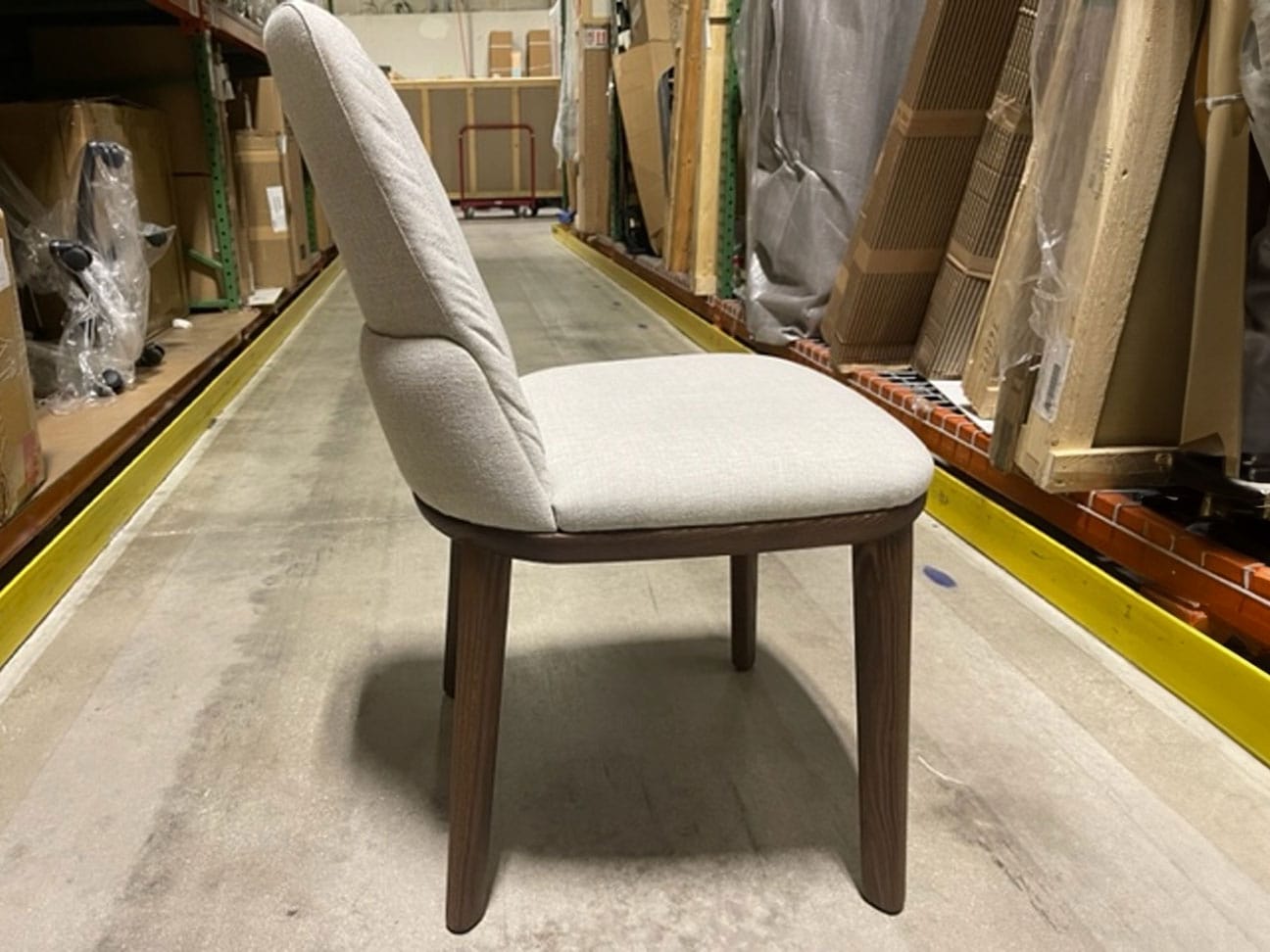 Fabric in B520 Beige with a walnut base and legs.