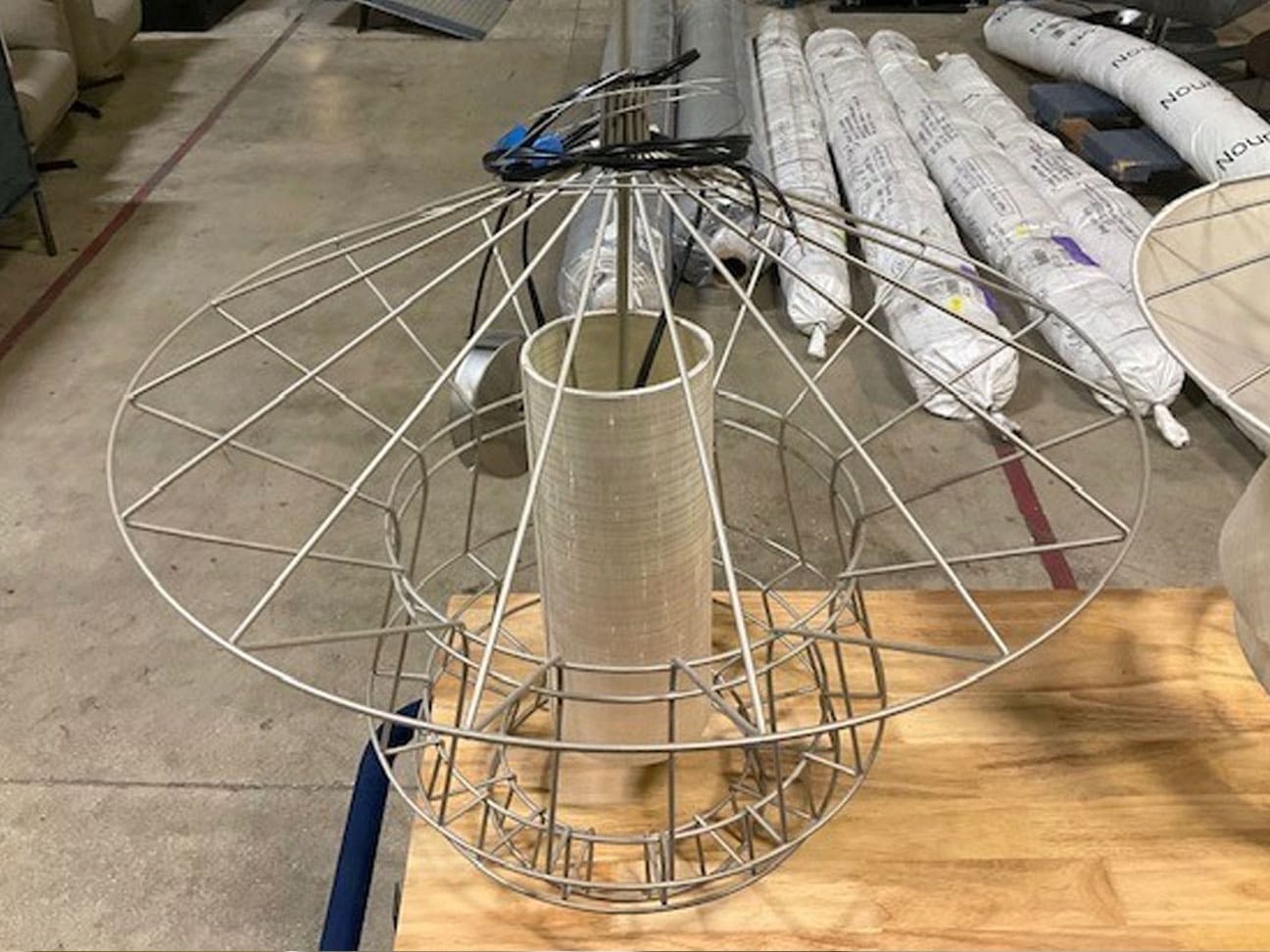 Geometric and airy, the Zeppelin Pendant makes a sculptural statement, diffusing a pleasant glow in any space.