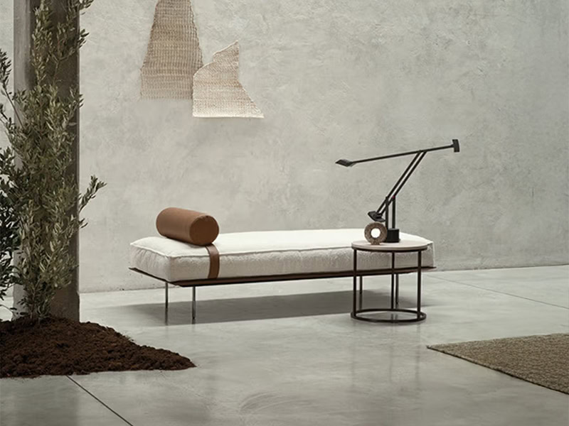 The Vogue Bench by Gianmaria & Stefano Conficconi is a sophisticated example of contemporary Italian design. Its streamlined silhouette and refined proportions highlight the natural beauty of raw-cut leather, paired with sleek metal legs that add a modern touch. Complete with a bolster cushion for added comfort, this bench is as functional as it is stylish, making it an ideal piece for bedrooms, living areas, or entryways.