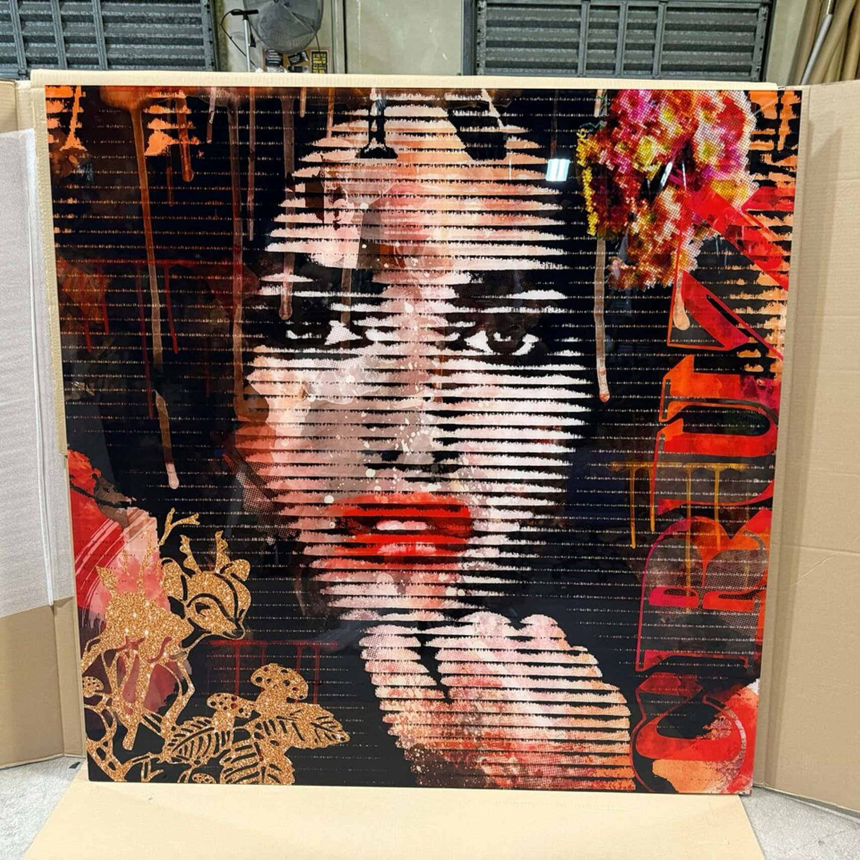 Bold and cinematic, Marylyn (Woman in Red) by Cobra Art captures attention with its striking gaze, vibrant red lips, and layered textures. Metallic accents and abstract florals add intrigue, making it a powerful statement piece for any modern interior.