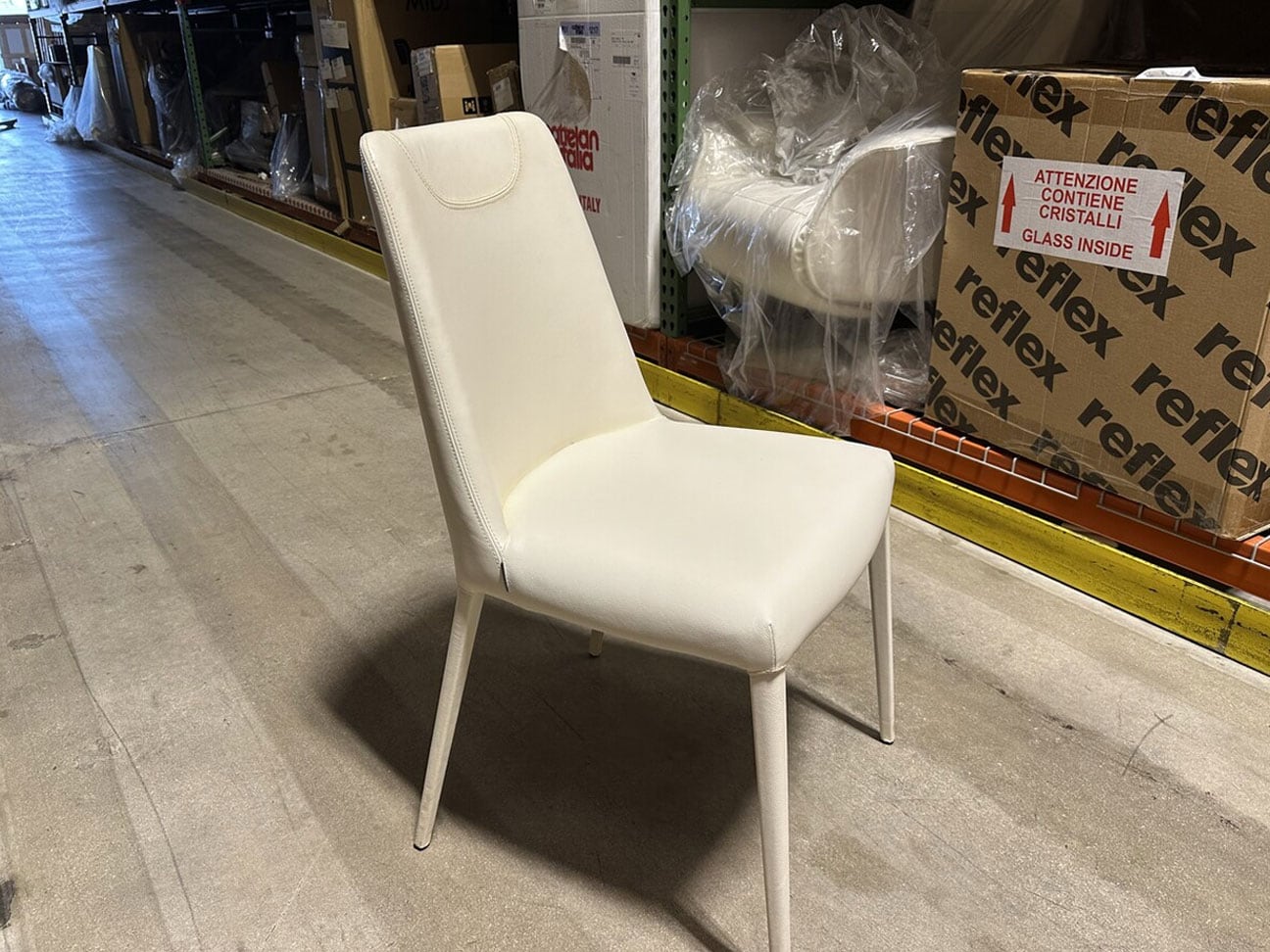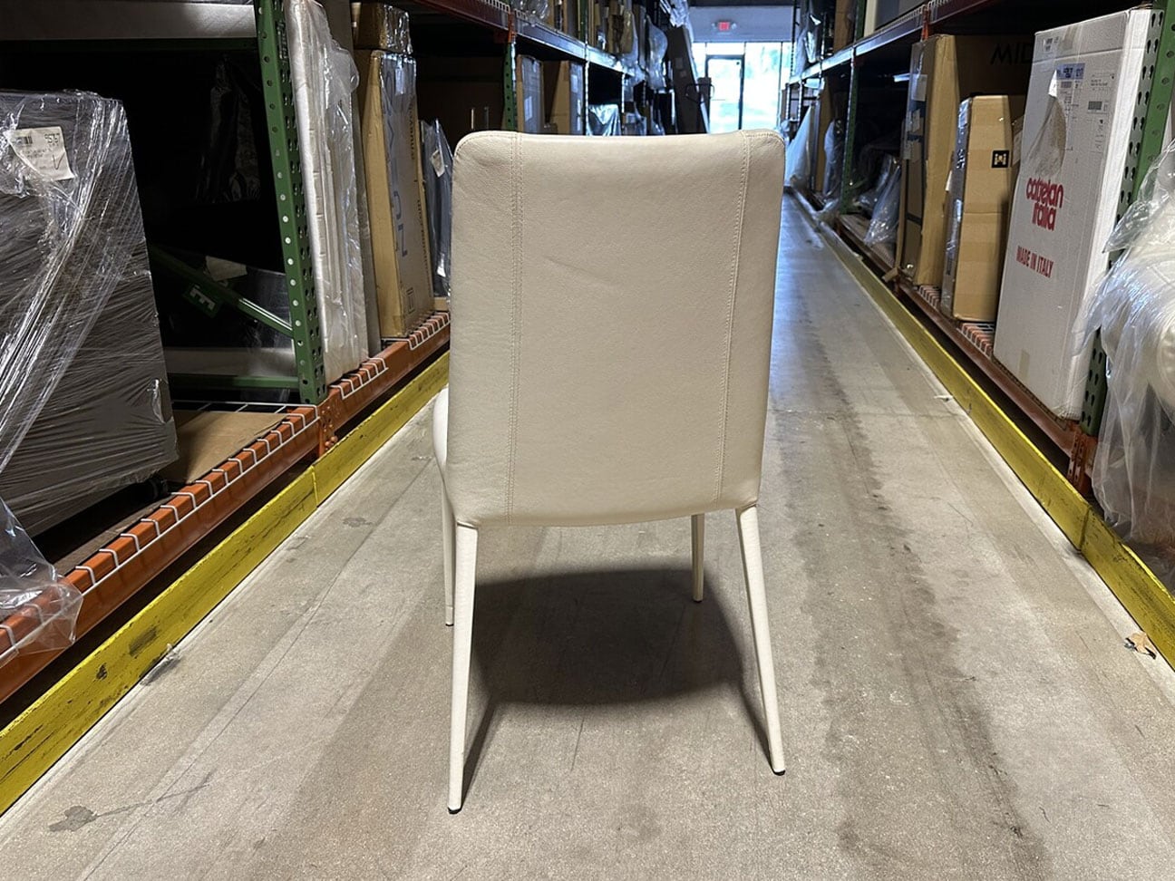 The Ozzio Sofia Side Chair features a sleek design with a fully upholstered finish and delicate stitching, creating elegant chromatic effects.