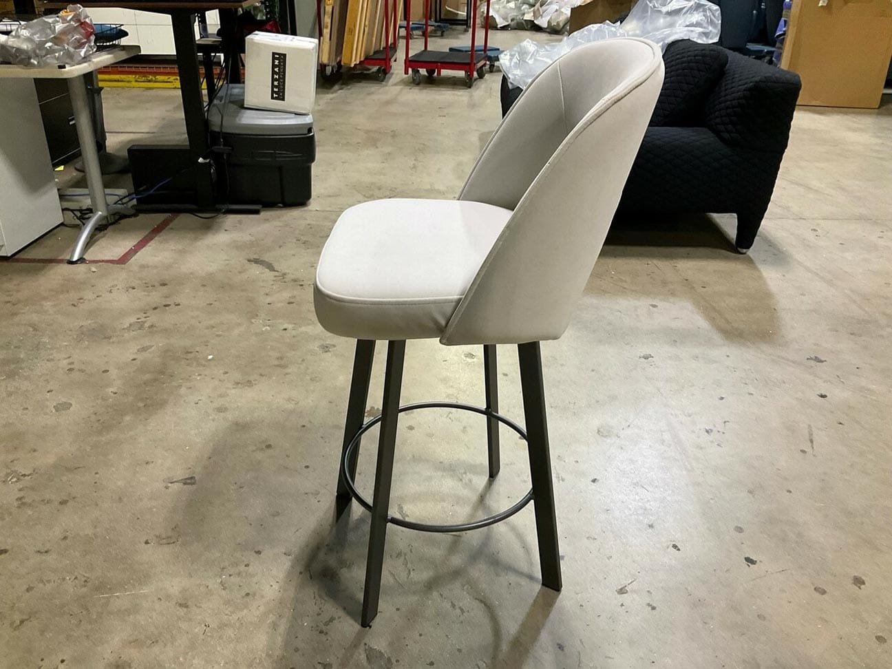 The Trica Mia Swivel Counterstool features elegant grey fabric and sturdy Anthracite legs, combining style and comfort for your space.