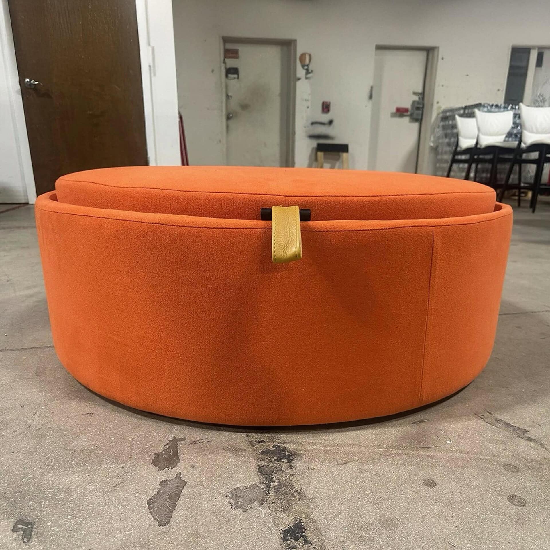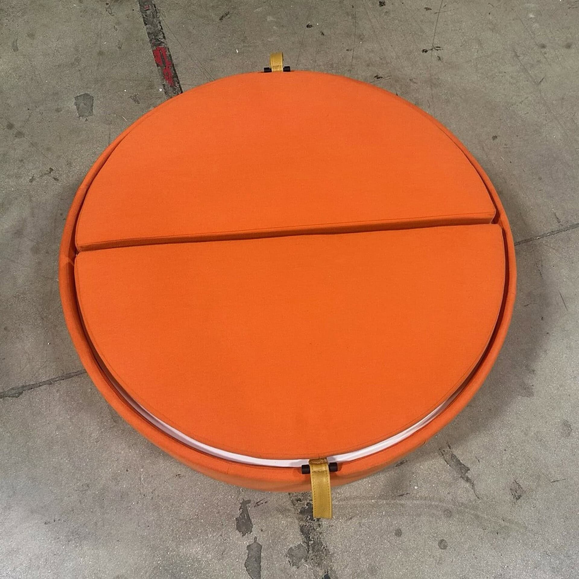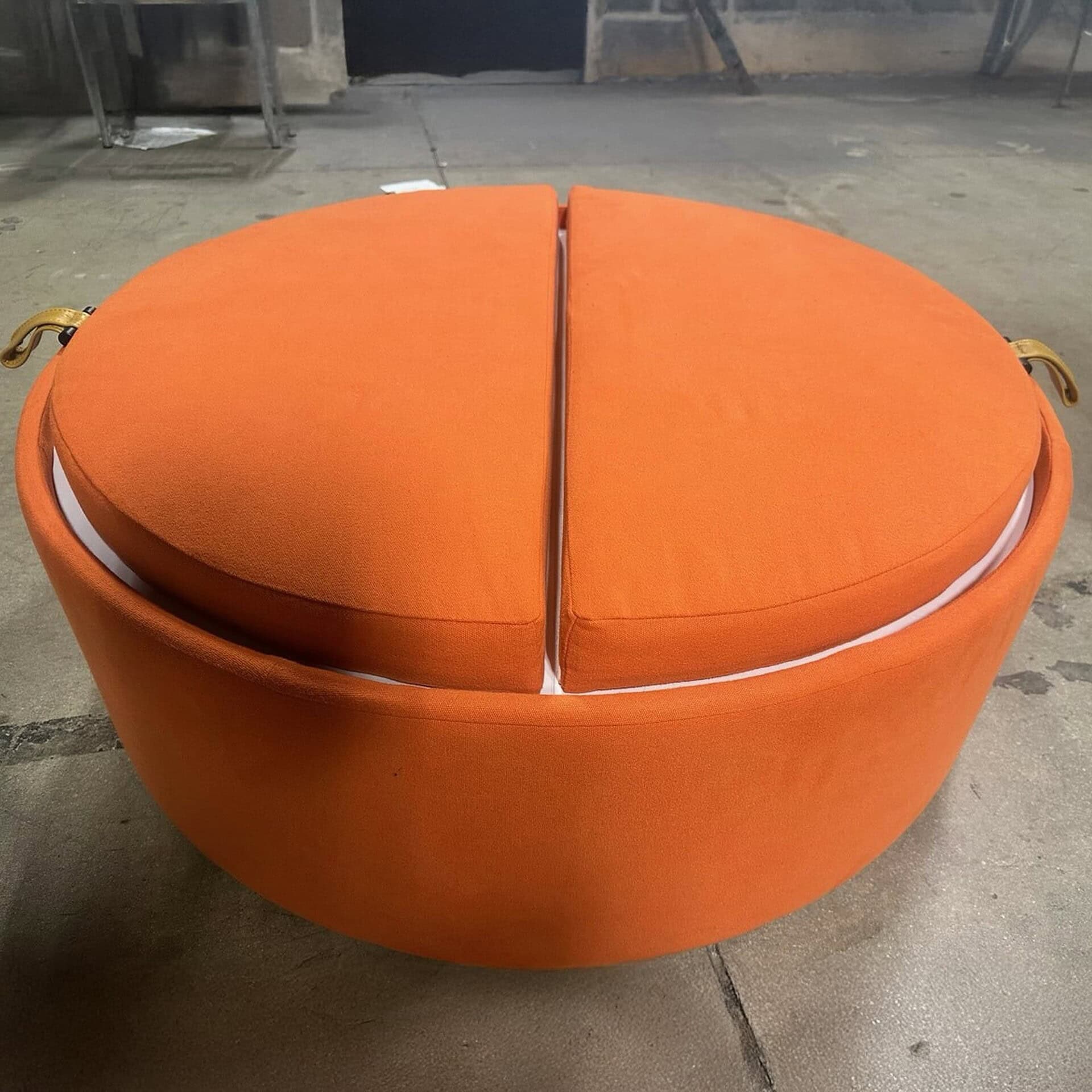 The Tumidei Opening Pouf is a modern and versatile accessory, serving as both a stylish seat and a coffee table with hidden storage. Perfect for home or contract spaces, it adds a fresh energy to any decor.
