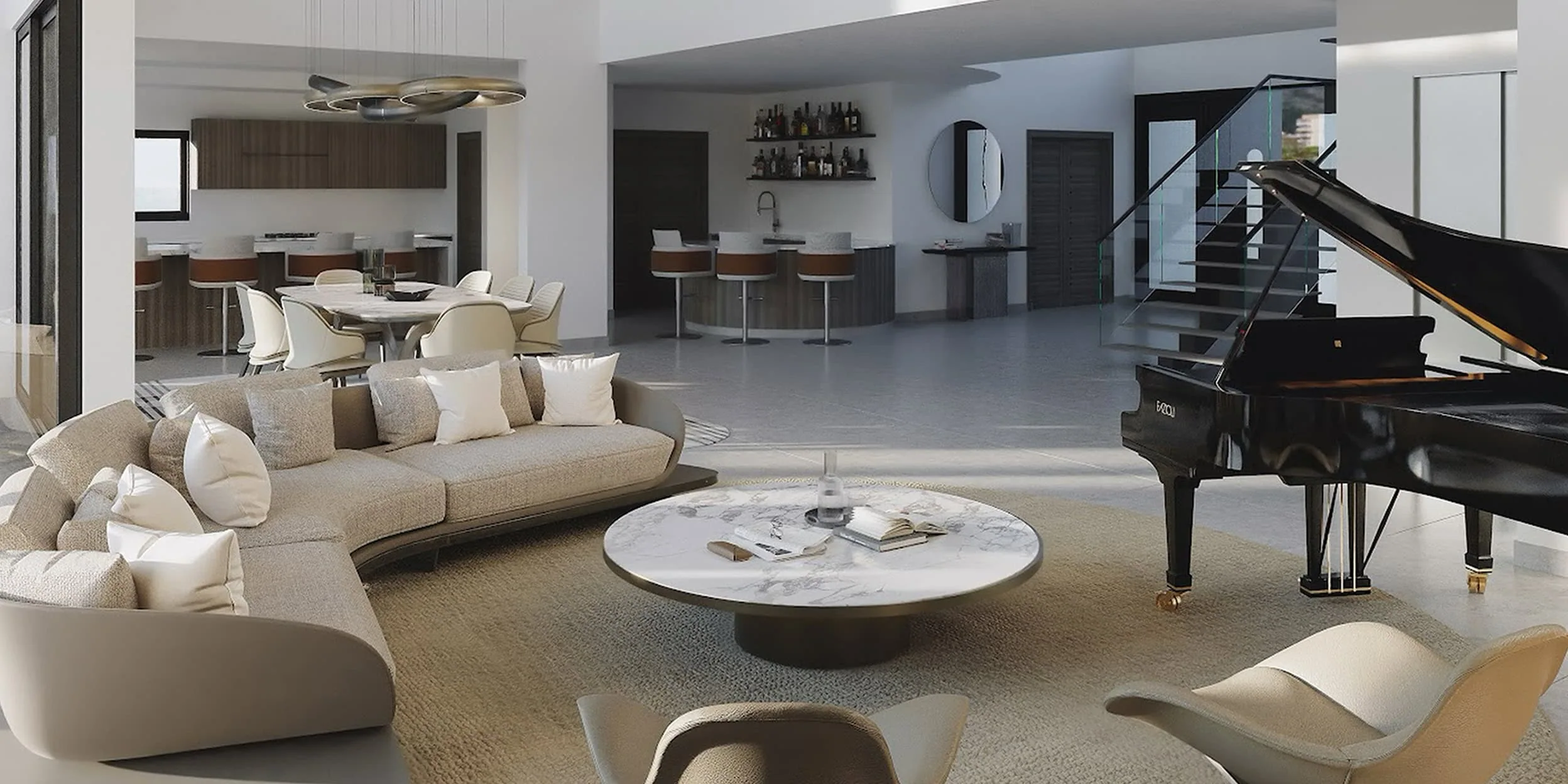 To complement the chairs, the Sklar Studio team selected the Segno Dining Table, whose bold base and refined vetromarmo tabletop create a grounded yet elegant foundation. Overhead, the Cerchio Chandelier introduces a dramatic focal point with its looping ring composition—adding depth and movement while keeping the attention firmly on the hero piece below.