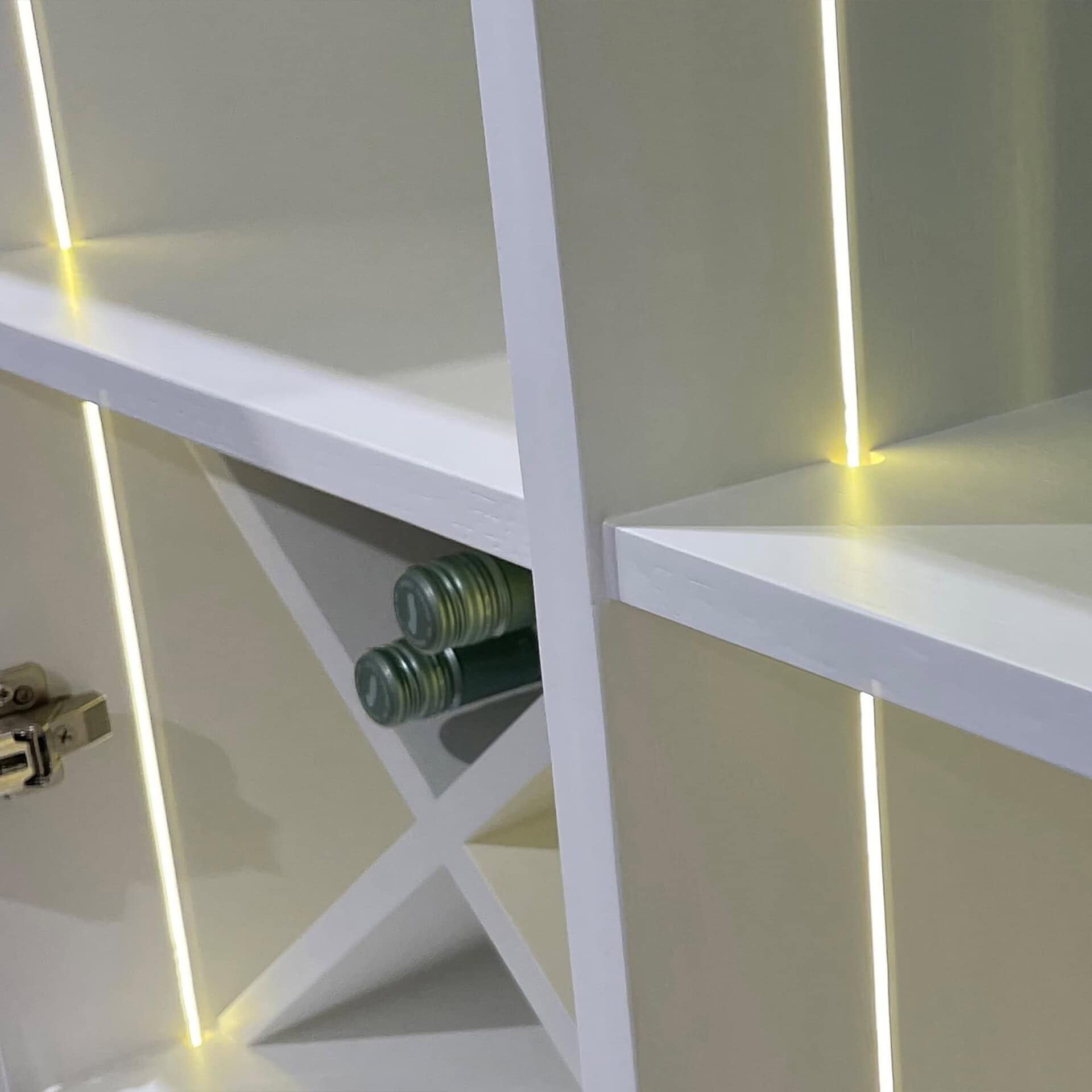 • Adjustable shelving with built-in bottle racks