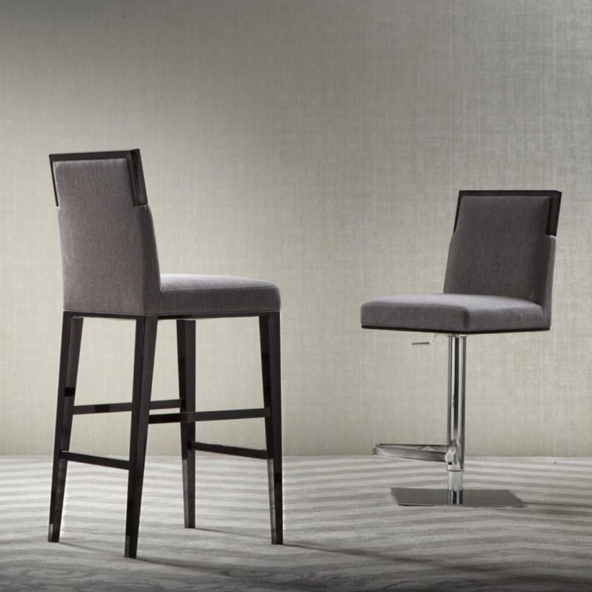 Concept features a solid beechwood frame and a generous seat. The padded back is framed by a fine solid wood trim, which can be ordered with or without sophisticated stitching. Your choice can be made either horizontally or vertically. In addition to the stool, the Concept collection also includes a chair and an armchair. Several fabrics, leathers, and imitation leathers are available in this range that can be customized to meet your individual needs.
