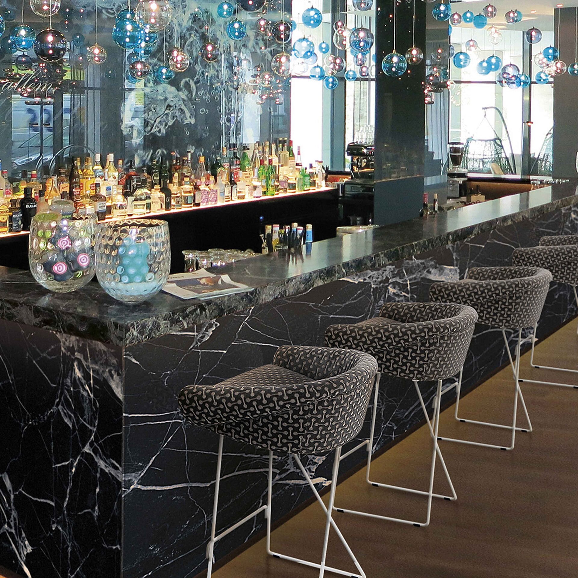 A knot in a ribbon is the inspiration for the Airstrike Barstool. A well-rounded appearance is achieved by using an oval-shaped armrest as the base for the backrest. Featuring soft, eye-catching lines that are inviting and comfortable, this collection of chairs creates an environment that is both creative and cosy.