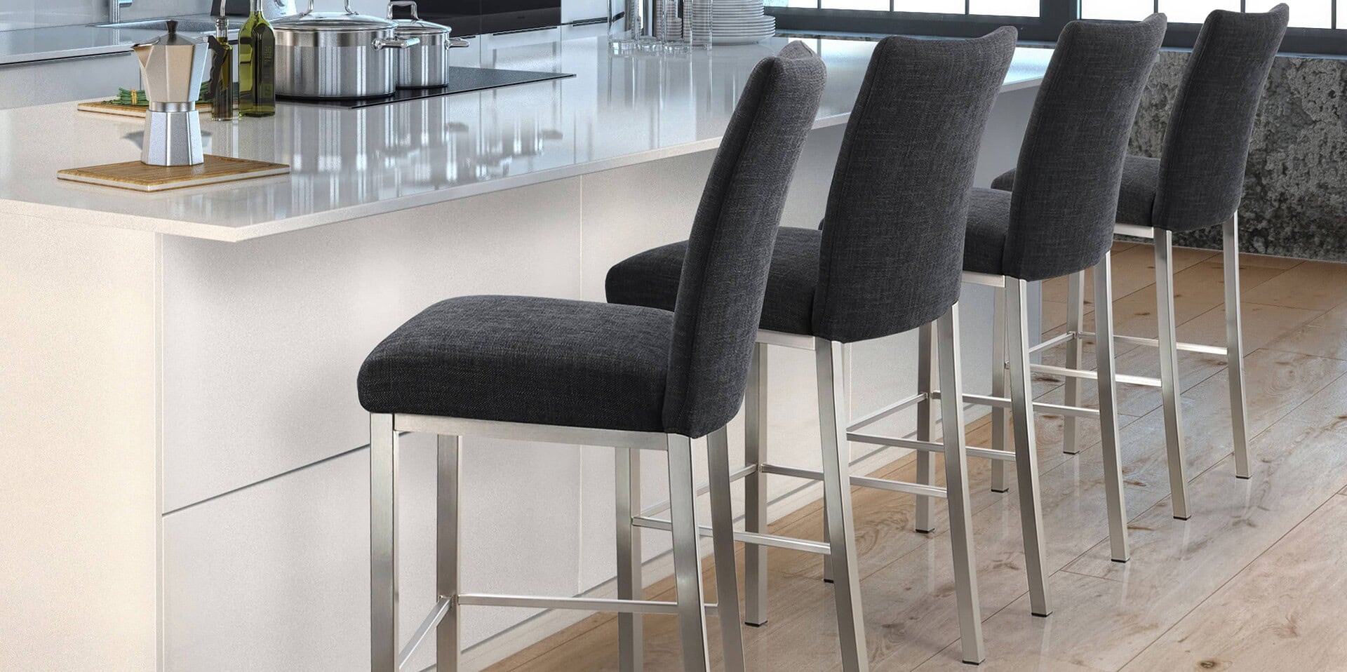 Trica's Biscaro Barstool meets the highest expectation when it comes to modern appeal and luxurious quality. Monochromatic and timeless, this everyday barstool is subtle yet suitable in only the most beautiful and contemporary areas to accentuate your space with class.