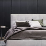 It is the aim of the headboard pillows to create a cosy and comfortable environment, with delicate lines, through the elegance of the shapes and the softness of the pillows. For this reason, it is important for the backrest to have a slim design that forms a slight recess from the side when viewed. With a proportionate and balanced frame, this bed offers great comfort and is available in two sizes: a modern bed and a king bed. Additionally, the mattress is concealed with a concealed storage unit underneath the mattress.