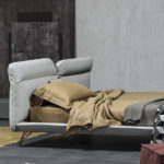 There is no doubt that Crystal is a classic bed with a modern design. With its straightforward lines, it has a rectangular headboard embellished only by stitching, which makes it easy to lower the headboard. The minimalist rigour is compensated by the addition of elegant details, guaranteed by excellent tailoring skills. The frame is thus elegantly raised from the floor, and the mattress rests on an original trapezoid-shaped structure, which is complemented by an original, curved design.