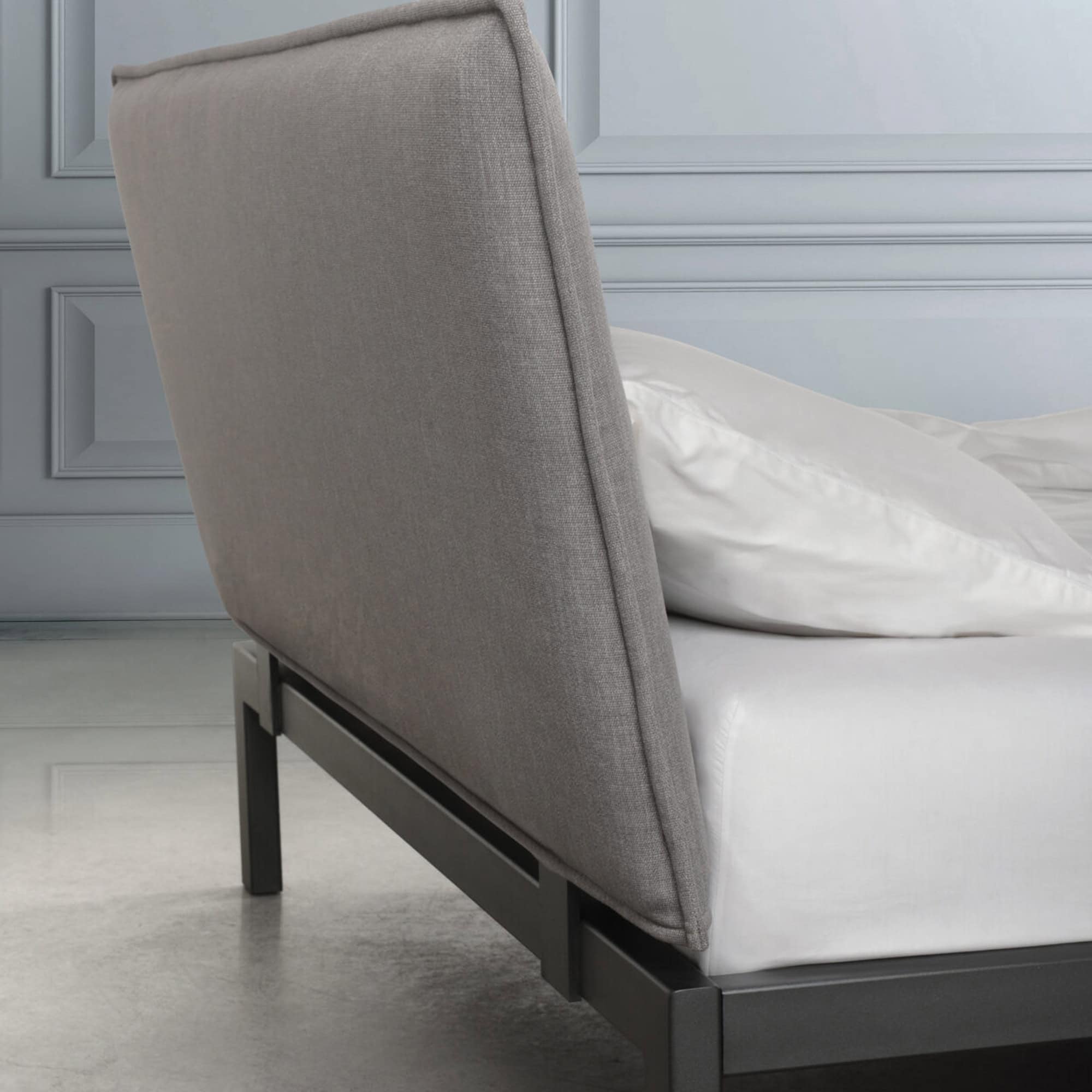Beyond its visual appeal, the Dream Bed is designed for functionality and adaptability. Featuring posture boards made of 5/8” upholstered particle boards with ventilation holes reinforced by steel, it meets mattress manufacturers’ warranty requirements while ensuring excellent support and breathability. Available in four standard sizes—Twin, Double, Queen, and King—this bed allows for personal customization in both finish and upholstery, making it a flexible choice for diverse design preferences and room layouts.