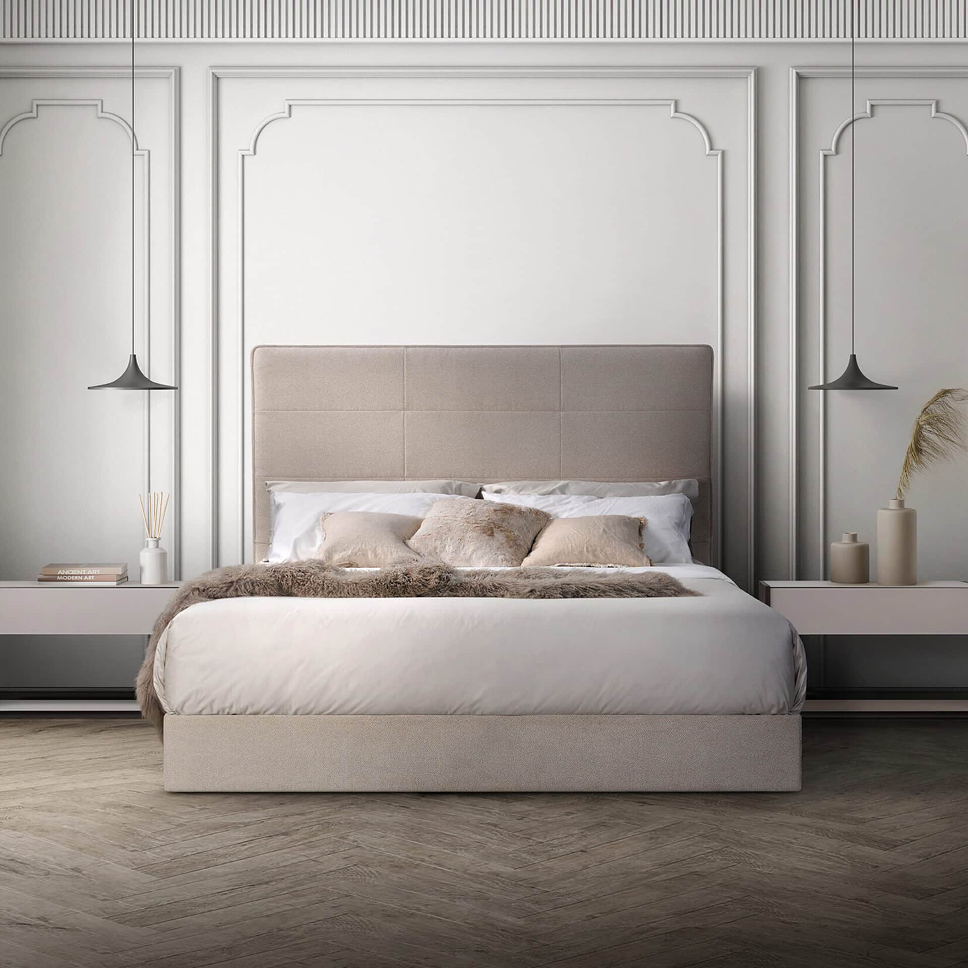 A beautiful contemporary bedroom centrepiece, the Ema Bed offers a range of customizable options, allowing it to work well with your space.