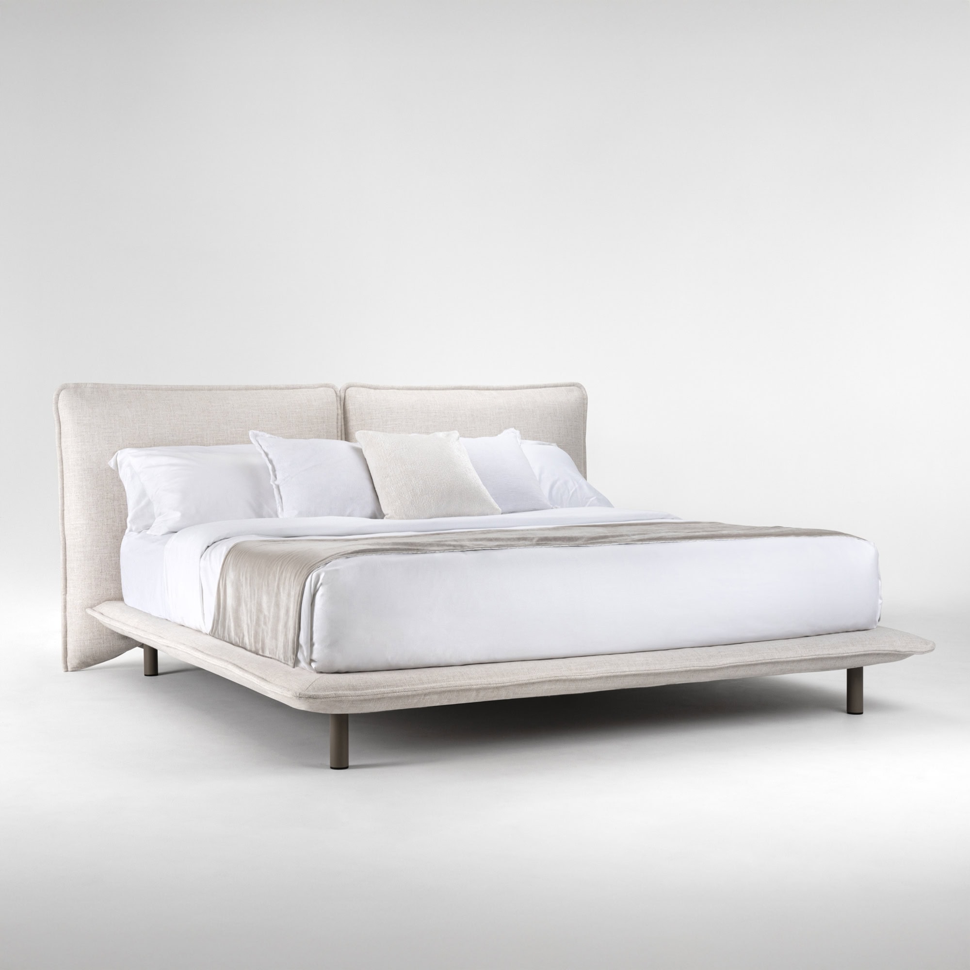 The Haven Bed by Trica is the epitome of quiet luxury—where comfort meets craftsmanship in a sleek, low-profile design. Thoughtfully tailored with a gently curved, split headboard and elevated by cylindrical legs, Haven brings softness and structure into perfect balance. Its plush silhouette and clean lines invite a sense of calm and ease, making it ideal for contemporary bedrooms with a minimalist or organic sensibility. The elevated frame keeps the overall look light, while the padded headboard offers support for reading, lounging, or winding down.