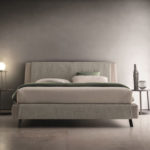 A bed that originates from the homonymous sofa – replicates its distinctive metal feet as well as its elegant proportions and absolute comfort. It’s distinguished by a structure covered with leather or fabric which is then wrapped with strips of fabric that further enhance its design, making it really unique and special.