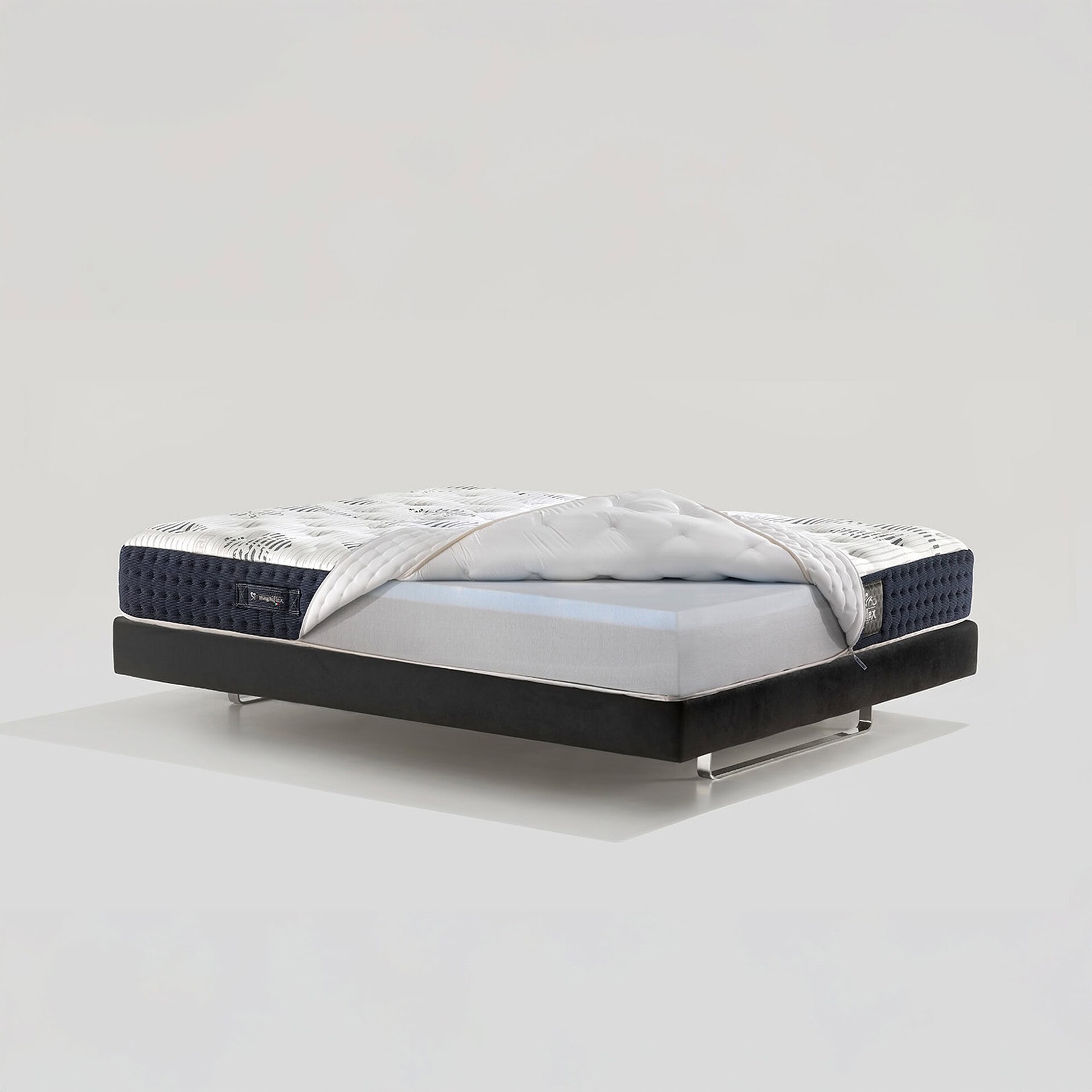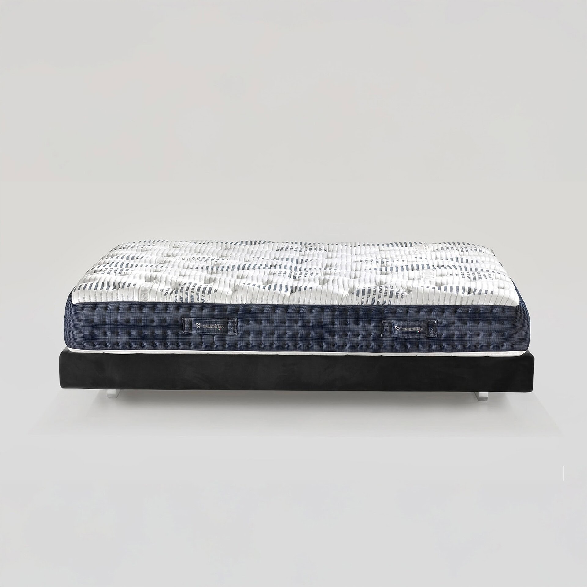 Handcrafted in Italy, the mattress features a temperature-regulating MagniCool fabric cover that draws heat and moisture away from the body. A comfort layer of Memoform provides body-contouring softness, while the Elioform support core ensures consistent structure and pressure relief. This balanced design offers softness without sacrificing support, making it a refined choice for comfort-seekers who value breathability and ergonomic performance.