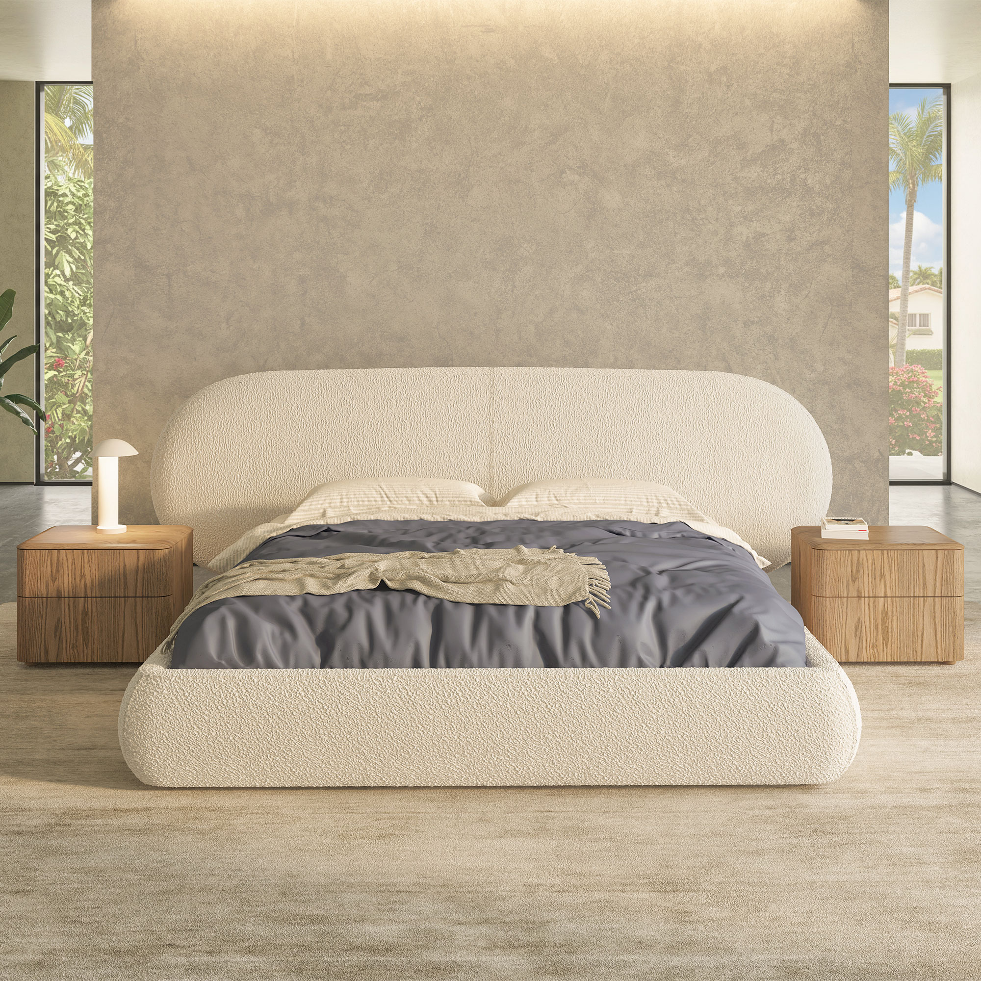 The thin shaped headboard is perfectly balanced on thin stiletto legs. Free float this contemporary bed and you will see how perfect the proportions are. The side and footrails are thin (no knocking your shins here!) but substantial. The angle of the headboard is perfect - the back is finished as beautifully as the front. Hard not to love this modern bed. It is available in several sizes. Lifetime warranty on frame & suspension.