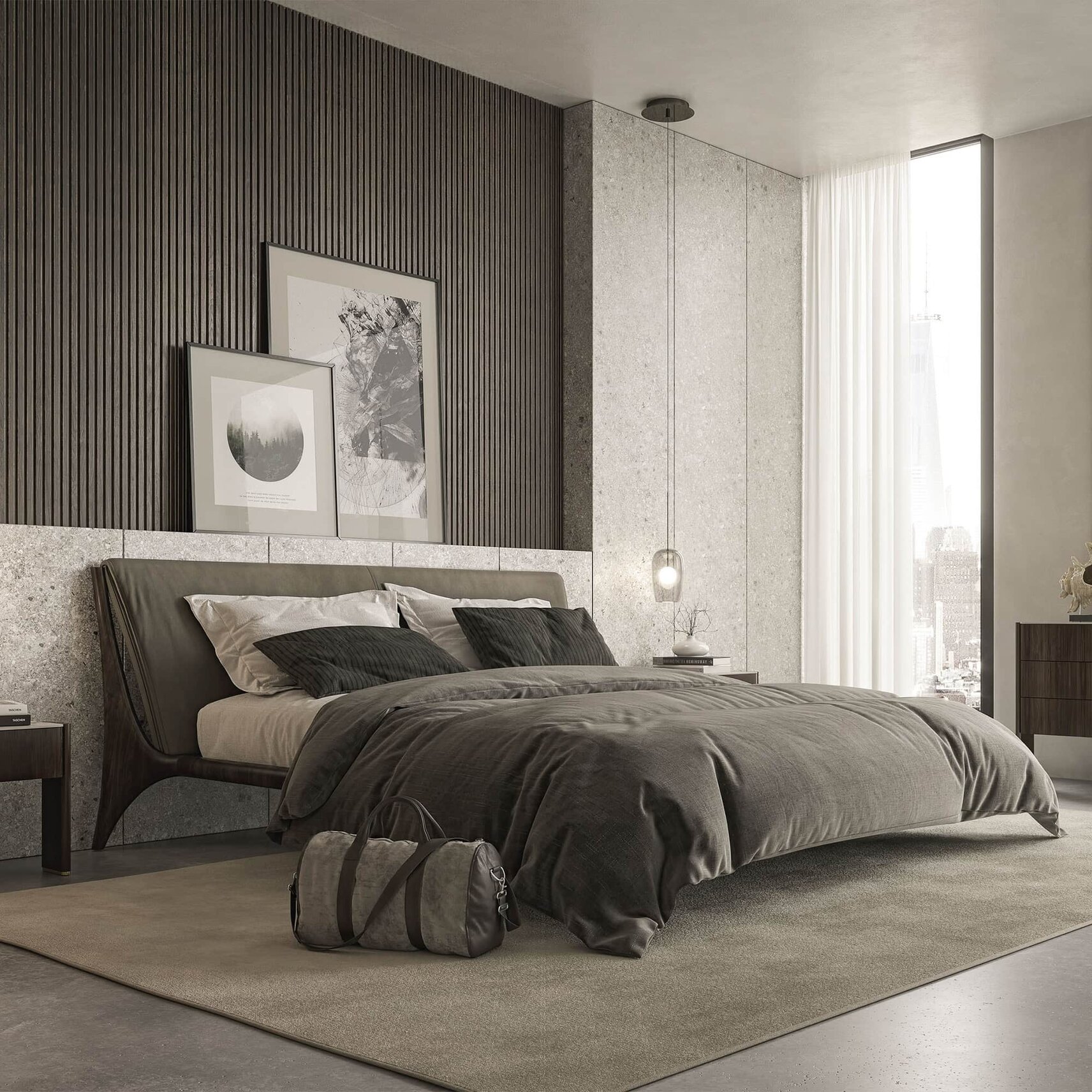 Crafted in Italy by Cattelan, the Nelson Bed emphasizes both style and substance. The headboard may be tailored in fabric, micro nubuck, synthetic leather, or soft leather, offering an array of colors and textures to suit your interior palette. Designed with a slatted base for support and built from eco-sustainable wood, this bed embodies durability, craftsmanship, and refined design versatility.