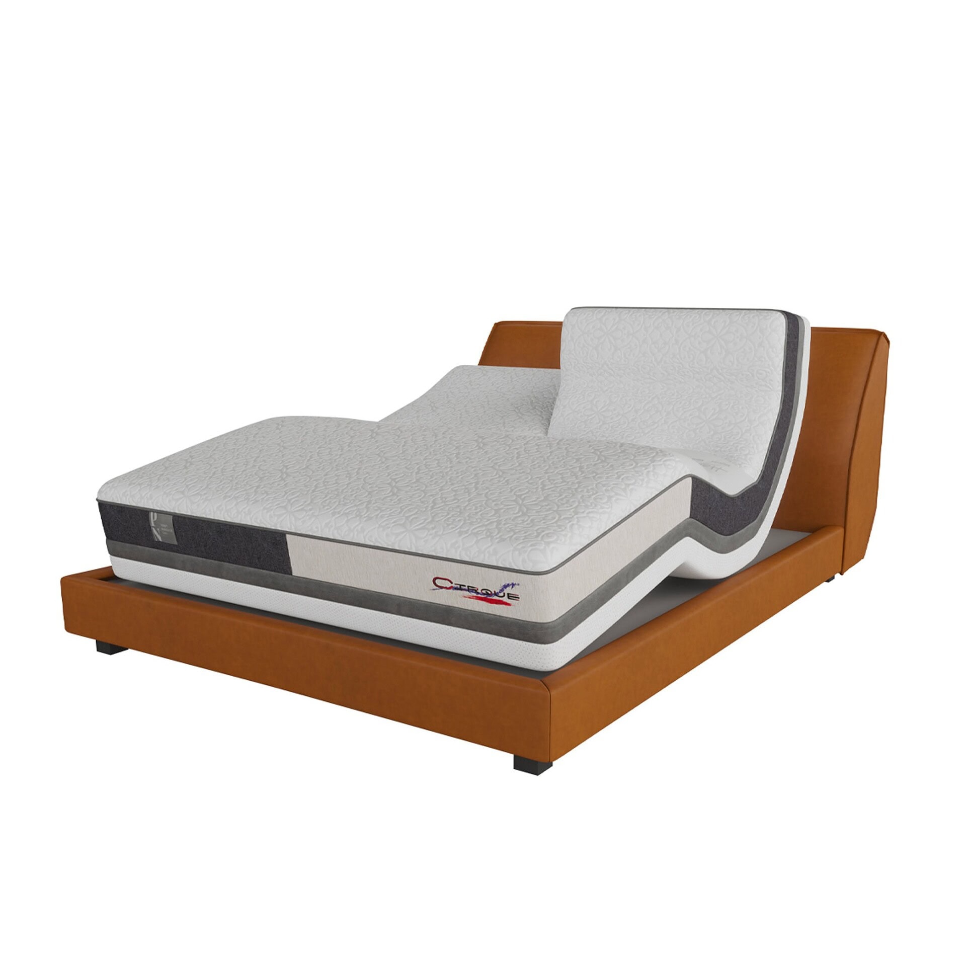 Handmade in Canada, the Pierrot Cooler mattress features the exclusive COOLER cover made from polyethylene fiber. This revolutionary fabric excels in moisture absorption and evaporation, maintaining your body temperature at an optimal 98.6°F. The reception area combines raw materials with NANO LATEX Hybrid foam and a ventilation system for superior sweat and humidity control. The first suspension zone uses resilient corrugated foam to absorb weight pressure, while the high-density foam core provides stable support. Complete with a wireless controller, this mattress offers lumbar support, head and knee adjustments for reading or relaxation, and custom sizing options for a perfect fit.