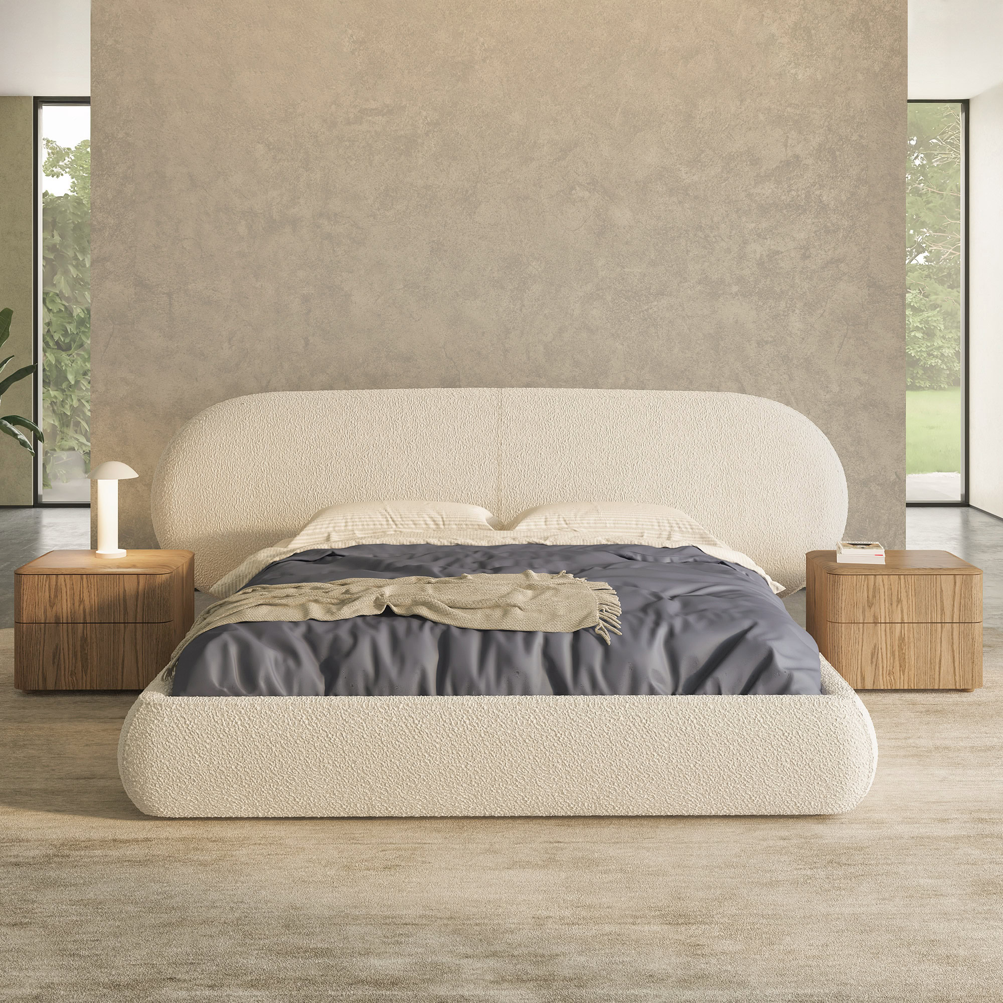 The Simone Upholstered Platform Bed by Huppé brings sculptural softness and modern warmth to the bedroom. Wrapped in a tailored slipcover, its plush curves and minimalist form create an inviting centerpiece that blends refined craftsmanship with everyday comfort.