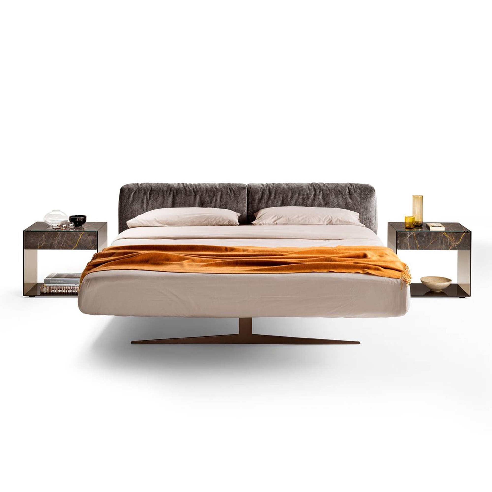 •  Floating platform bed with modern silhouette