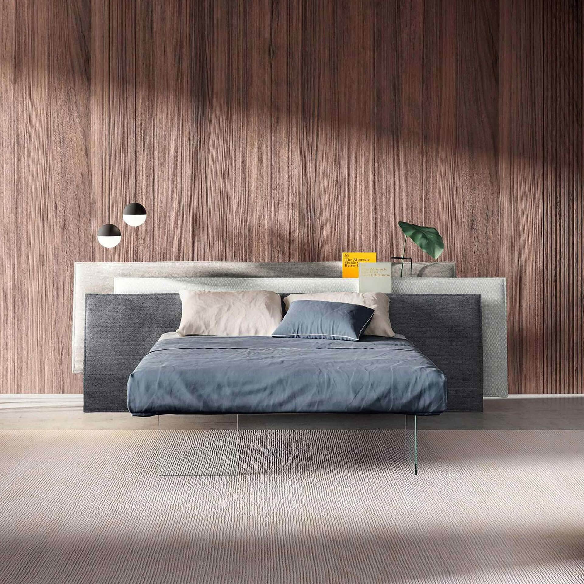 • Floating platform bed with modern silhouette