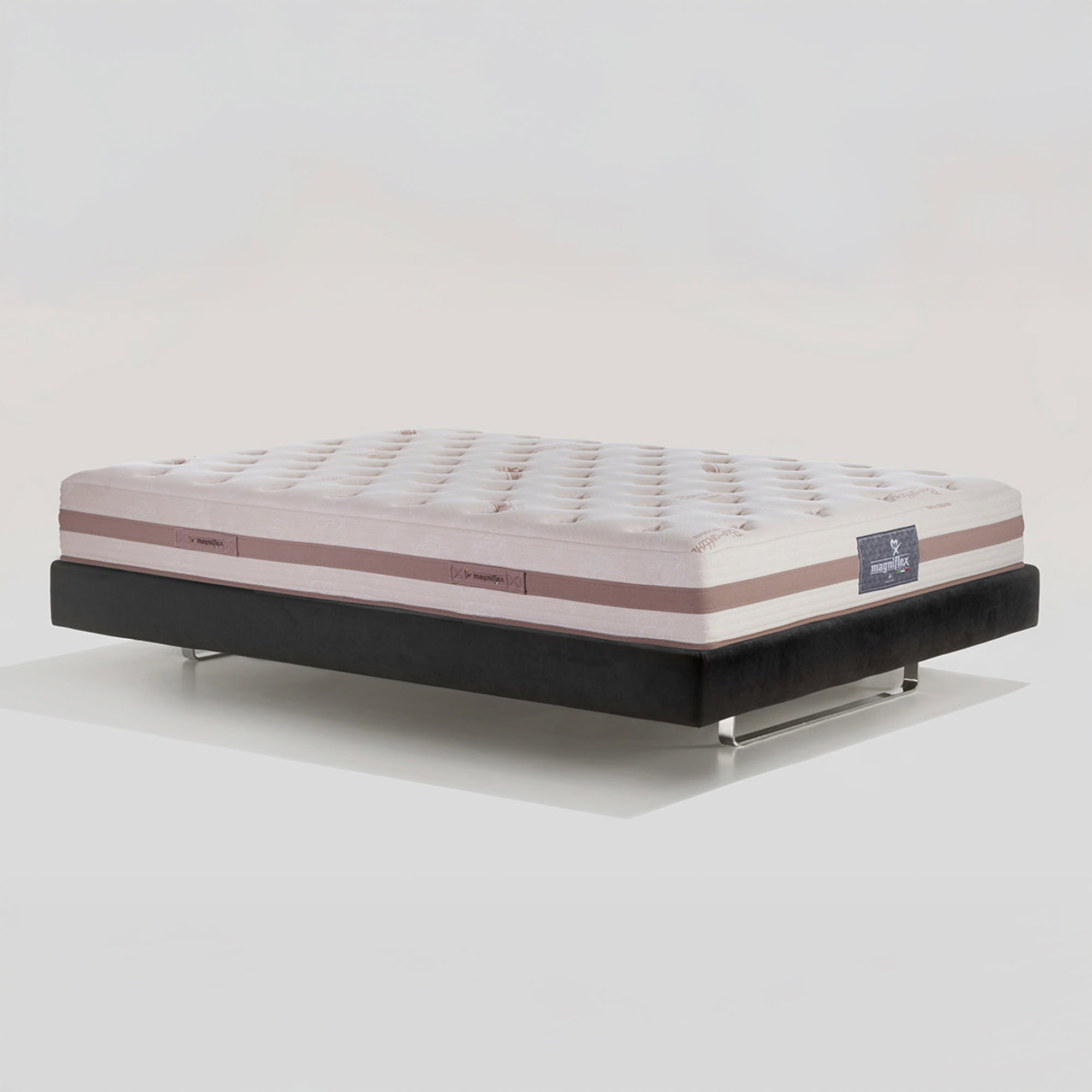 The Toscana Dual 10 features a soft, breathable organic cotton cover with a special 3D band for enhanced airflow and freshness. The interior is composed of a layer of Memoform (1 inch) that adapts naturally to your body's shape and a base layer of Eliosoft (7½ inches) for optimal support and elasticity. The addition of Super Soft Fiber padding enhances comfort, providing an enveloping and breathable feel. Made in Italy and OEKO-TEX certified, this mattress combines quality craftsmanship with eco-friendly design.