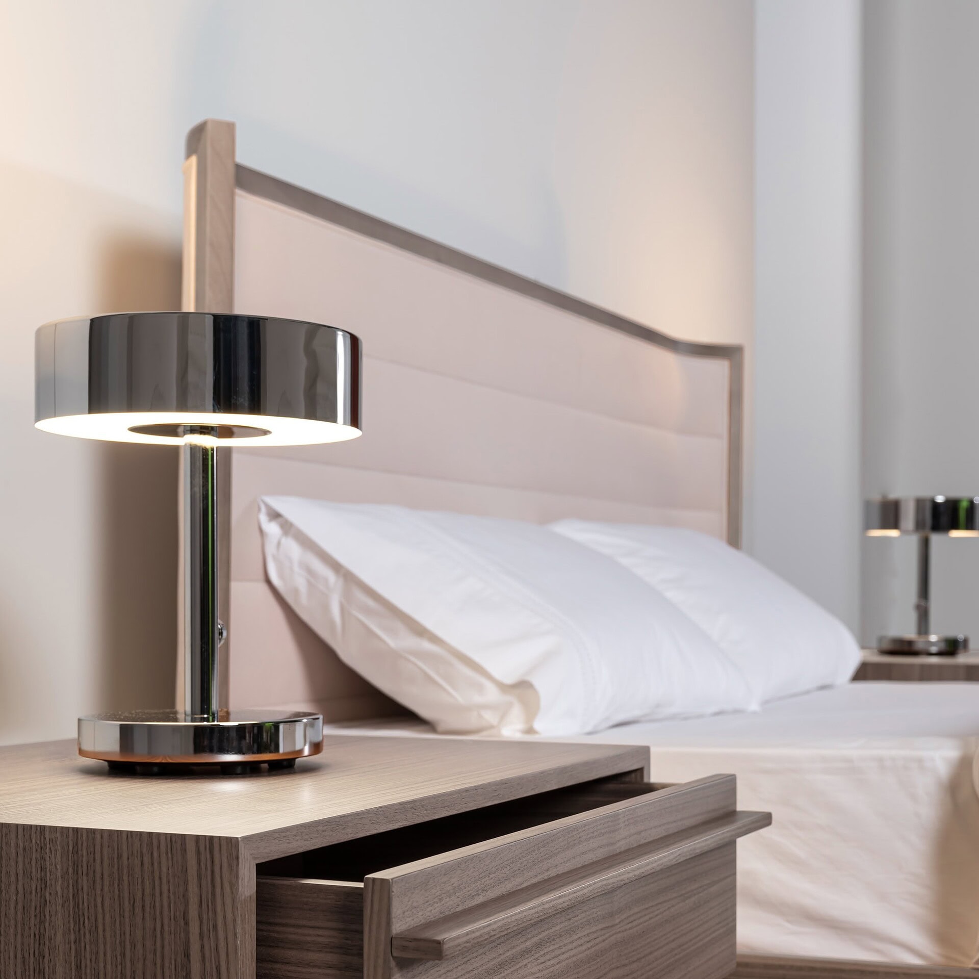 The Toulon Bed offers a harmonious blend of comfort and contemporary sophistication, featuring a plush upholstered headboard framed in rich wood for a look that’s both inviting and architectural. Its clean lines, generous proportions, and refined profile make it a standout in any bedroom, exuding a modern aesthetic while preserving timeless warmth. With a silhouette that feels both grounded and tailored, the Toulon Bed brings understated luxury to restful spaces.