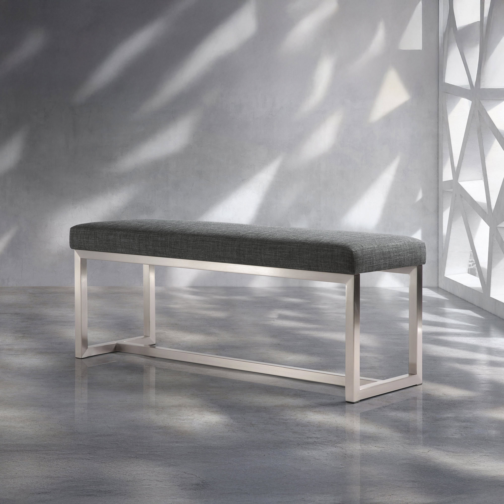 The Grado Bench blends industrial durability with refined comfort, making it a versatile addition to both residential and commercial spaces. Its minimalist silhouette is defined by a fully welded steel frame and high-resilience foam cushioning, delivering dependable structure with tailored support. With four available sizes and a sleek, low profile, the Grado offers flexible seating for entryways, bedrooms, or lounge areas — whether used as a stand-alone accent or placed at the foot of a bed or along a dining table.
