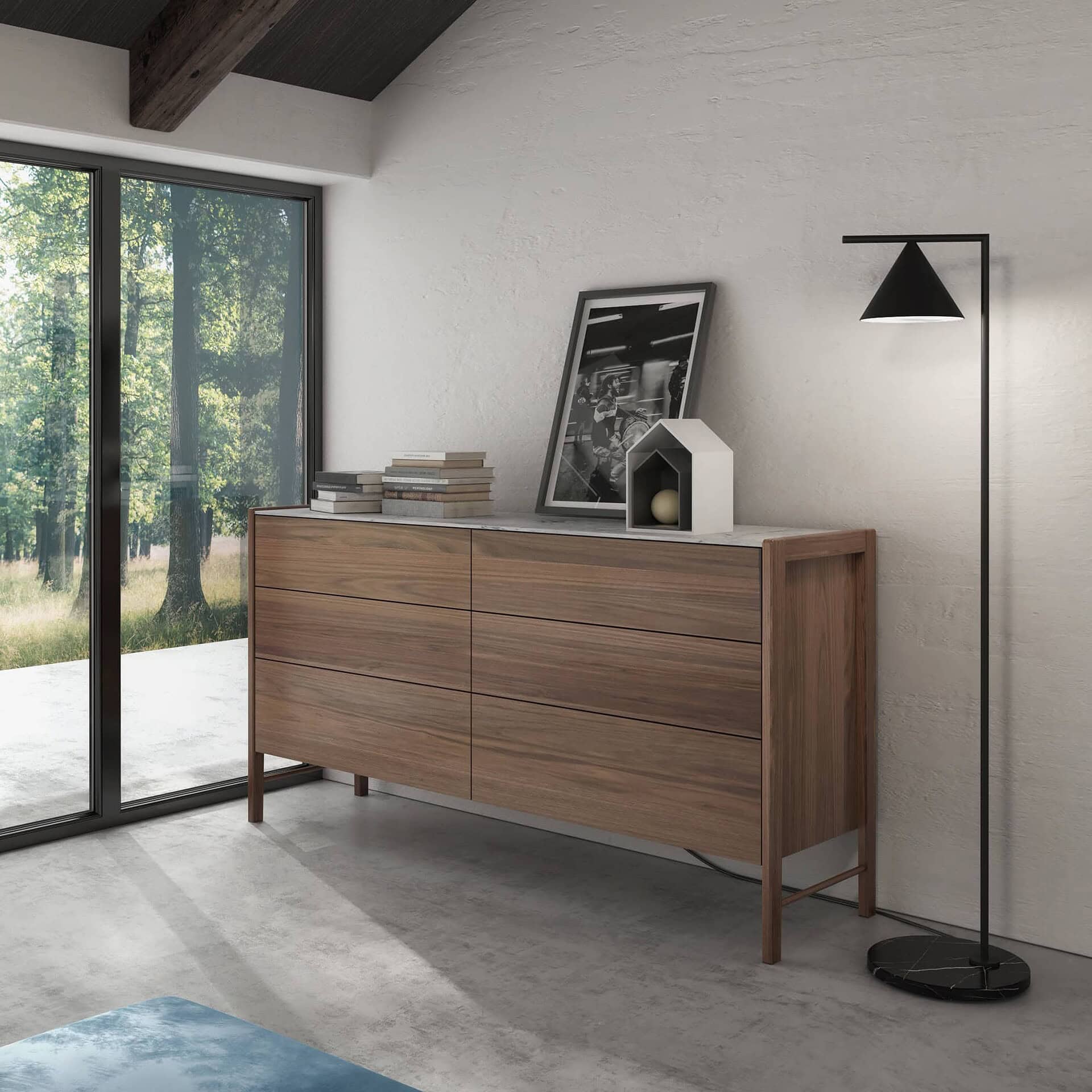 Designed for everyday function, Hemrik features six spacious drawers equipped with slow-motion, soft-close glides for effortless use. Optional ceramic or lacquered glass tops add a refined material contrast, while brass or brushed black hardware provides a subtle decorative accent. Crafted in Canada, each piece celebrates material variation and thoughtful craftsmanship, making every dresser uniquely its own.