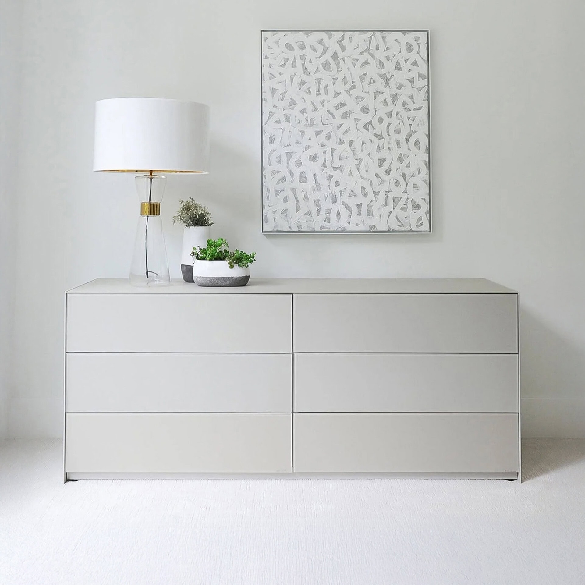 The Leila Chest is a organizational piece available in two sizes, with six drawers for plenty of storage in the contemporary bedroom.