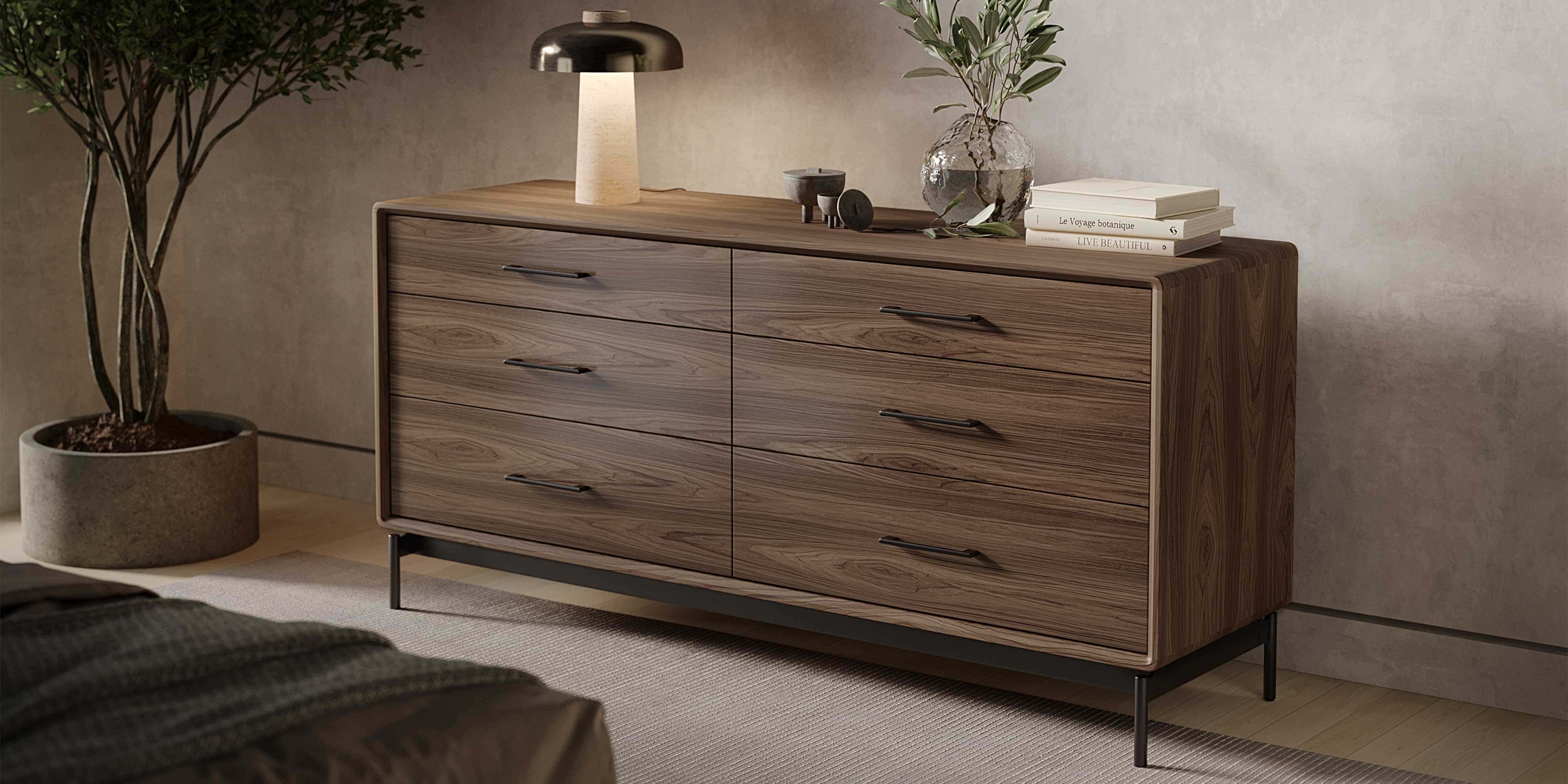 The LINQ 9186 6-Drawer Dresser: Streamlined storage solution with spacious drawers and concealed hardware, providing a seamless and elegant experience.