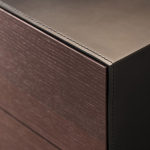 Minimalist in every detail, Norma features a push-to-open mechanism designed to access the contents of its large and practical drawers. A vast assortment of finishes is available to embellish the outside of these cabinets: new leathers and bronze metallic glass add to the classic matt or gloss lacquers, glass, mirror, wood and stone of the Pianca collection. The base, available in three different heights, can be added if desired.