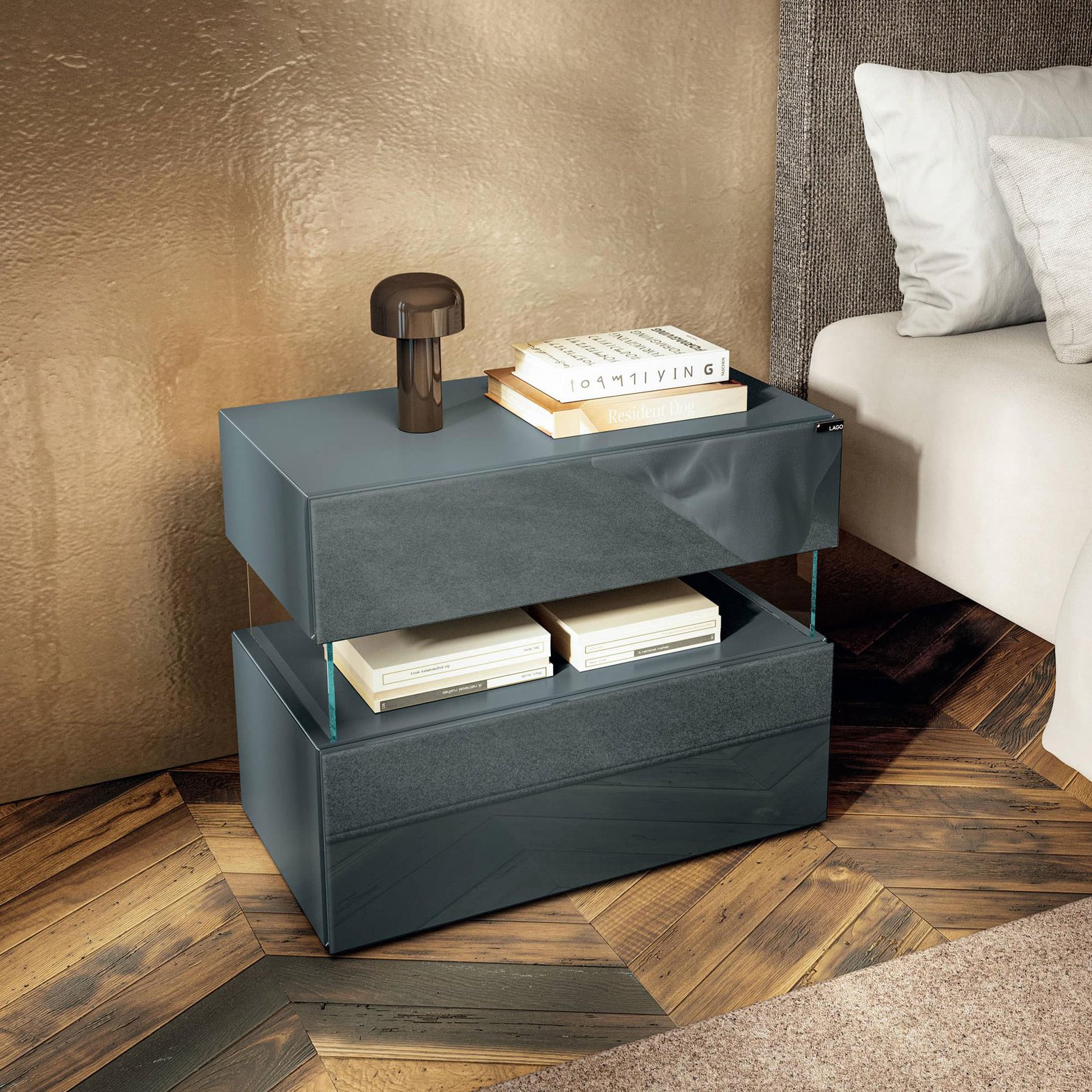 Designed with precision aluminum framing and a hidden fastening system, the Air Floating Glass Nightstand emphasizes craftsmanship while remaining highly customizable. Available in a wide range of finishes for both the front and top, each configuration balances material richness with floating elegance. Whether styled as a single accent or in pairs, it adds both practicality and a refined architectural touch to the bedroom.