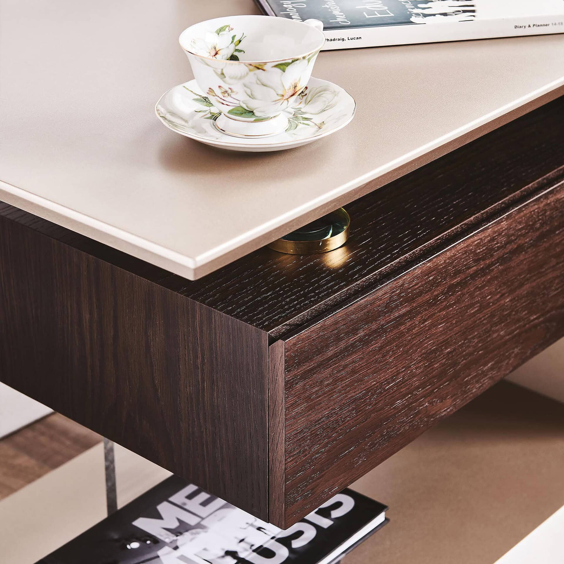 The Biagio Modern Nightstand embodies a refined balance of architecture and natural materiality, offering a sophisticated bedside accent designed for contemporary interiors. Its clean, geometric form is defined by a distinctive floating drawer and sculptural frame that creates a sense of visual lightness. Carefully proportioned and thoughtfully detailed, the design introduces subtle contrast through the pairing of lacquered surfaces and rich wood tones, bringing warmth and depth to the bedroom environment.