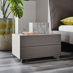 The Dyno nightstand makes a gorgeous accent piece in a modern bedroom. Organization is easy with the two spacious drawers that keep essential items readily accessible as well. With ample room on top, it's perfect for a clock or lamp, as well as beautiful pieces of decor. Thanks to the use of only the best materials, the nightstand is sustainable for years to come. Manufactured in Italy by Cattelan Italia, the Dyno features a wood frame in various finishes, stainless steel feet, and drawer fronts with upholstery options that include eco leathers and soft leathers in a multitude of colors.