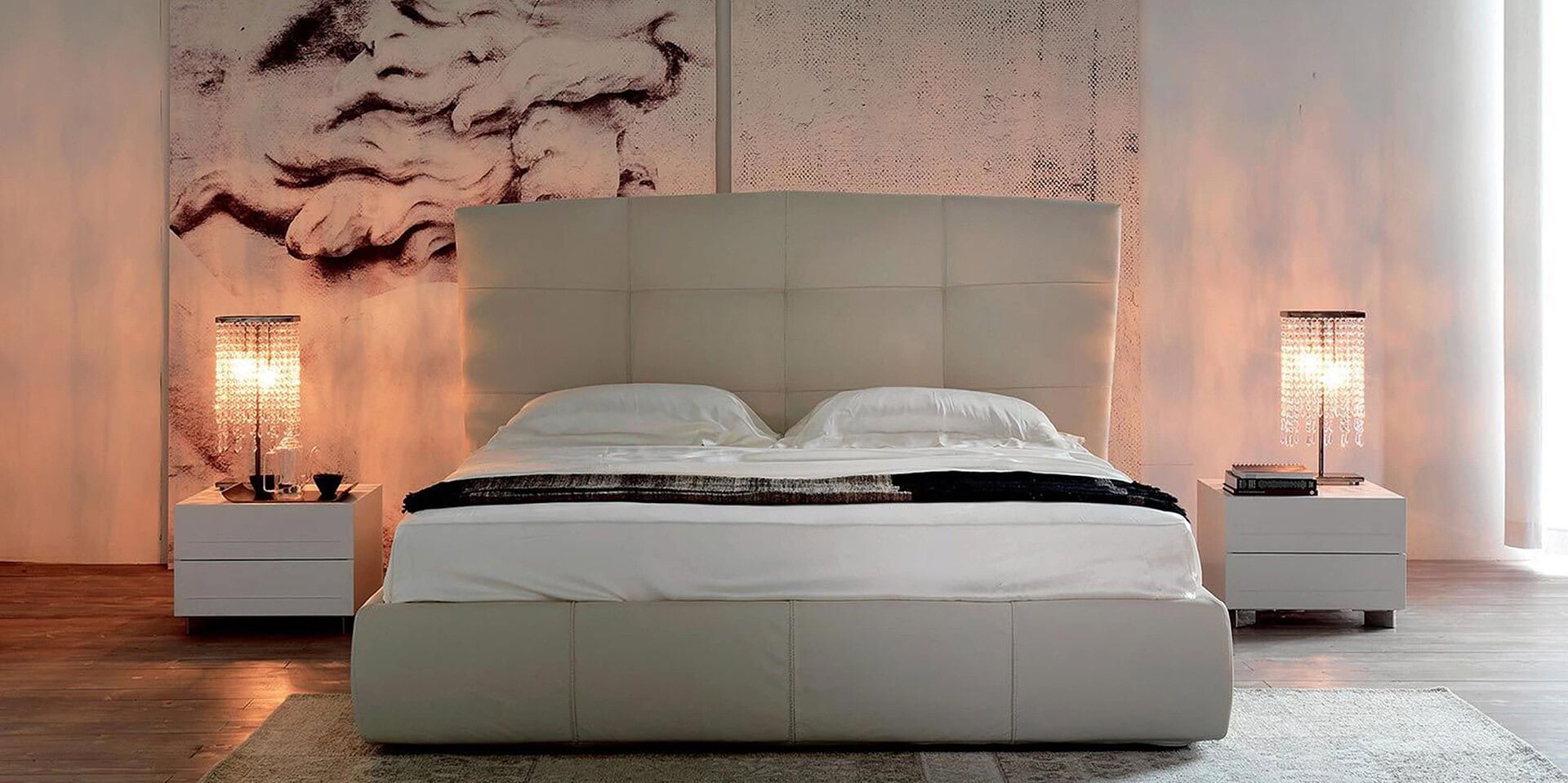 The Dyno nightstand, designed by Cattelan Italia, is a stunning accent piece in a modern bedroom.