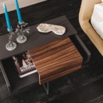 A beautiful bedroom piece in white or graphite embossed lacquered wood, the Dante Nightstand features a sliding door in Canaletto walnut or burned oak. The piece's base is available in white or graphite embossed lacquered steel. The Dante's sliding system is in plastic material and steel varnished with epoxy powders matt black. Warranted to meet or exceed industry standards.