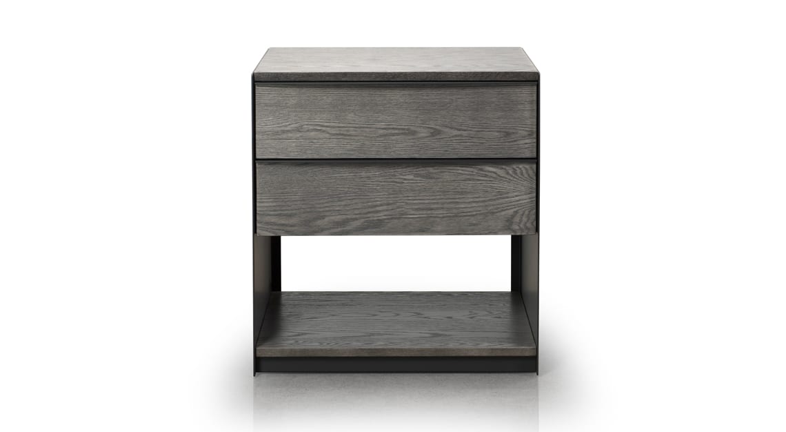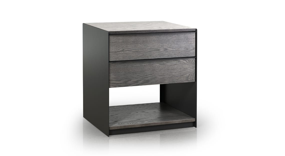 The Roots 2 Drawer Nightstand from Trica brings luxurious storage and display to the contemporary bedroom, with many customization options available.