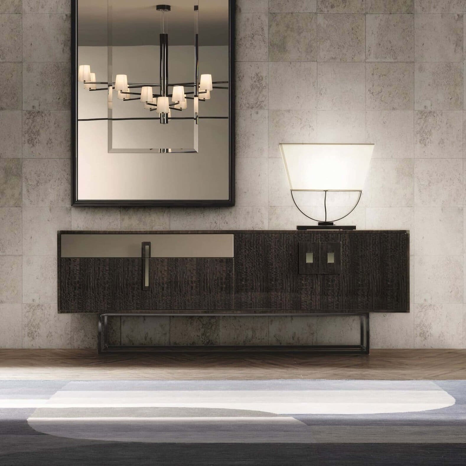 One of the hallmarks of Dreamer's impeccable design is the meticulous craftsmanship that goes into each and every finish. A set of handles in the same wood as the buffet, a leather-covered drawer, and a handy drop-down front all demonstrate how meticulous attention to every little detail has been given without neglecting the importance of functionality in the design process.