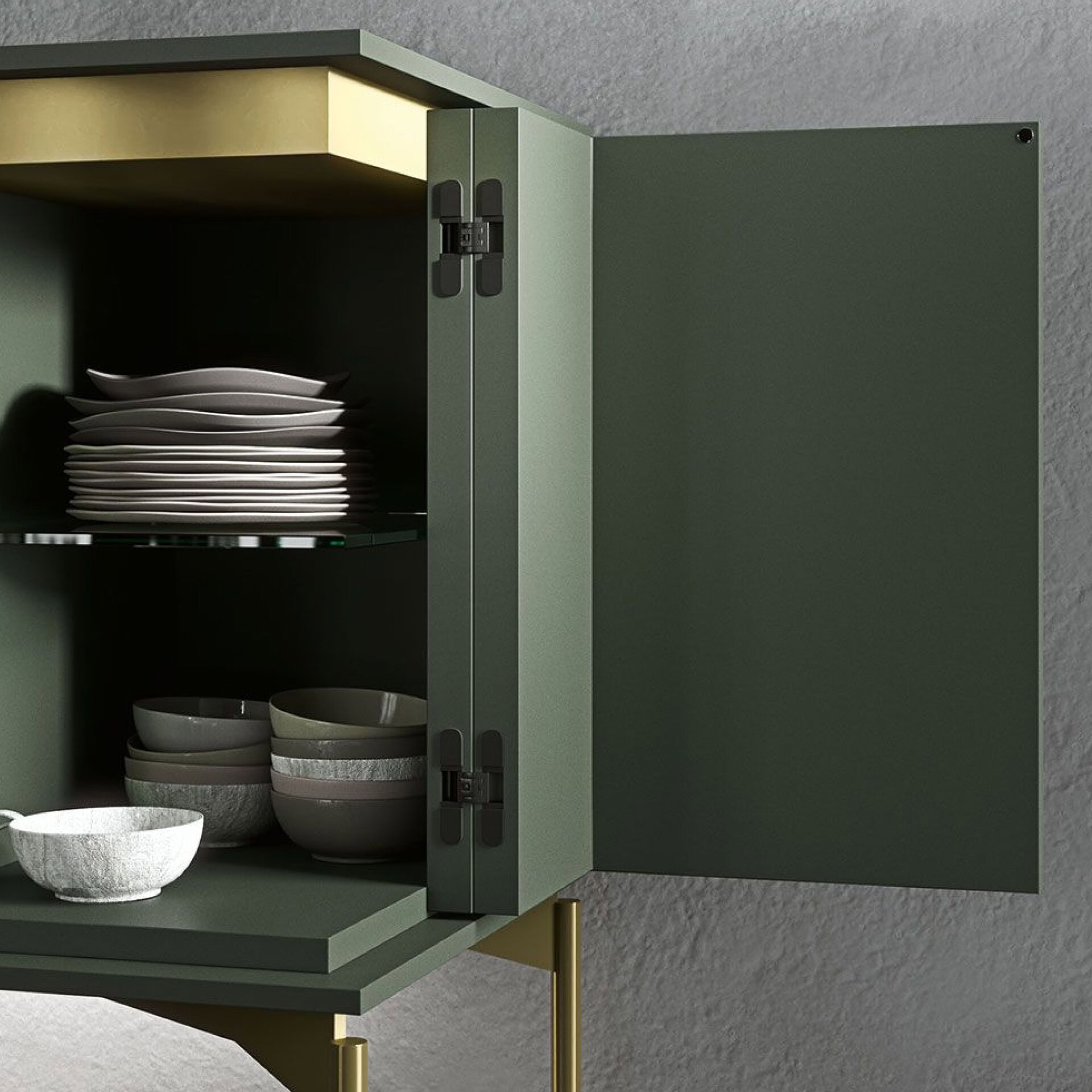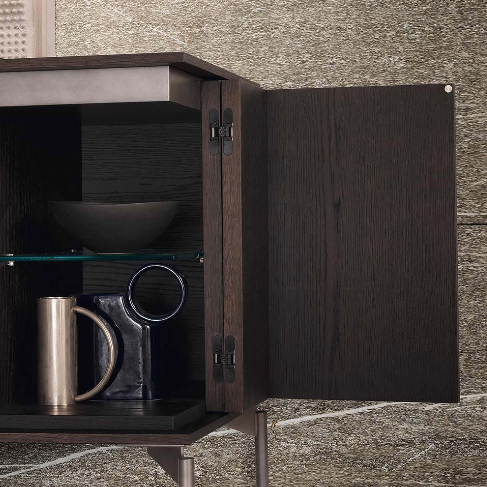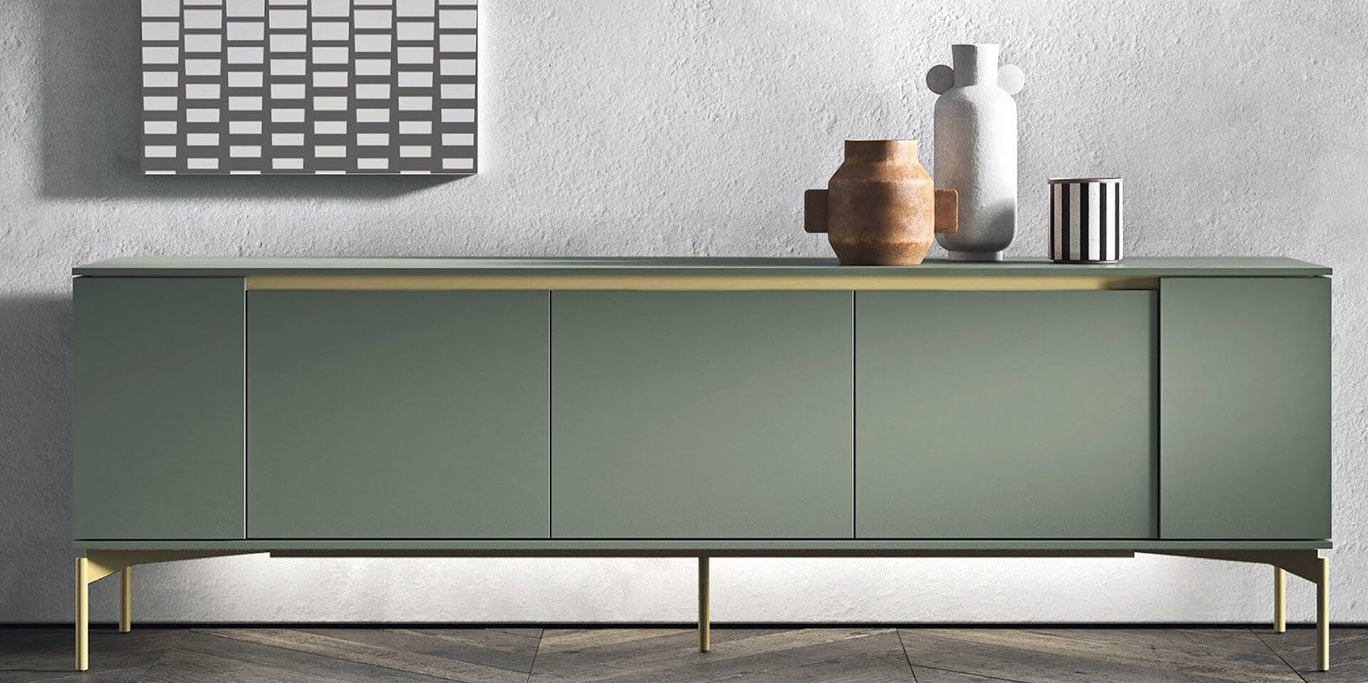 This Italian-made, four or five-door sideboard by Presotto Italia is easy to customize and manufactured with incredible attention to detail. To illuminate your belongings, an optional LED light kit is available, as well as a variety of finishes in wood, lacquer, and metallic lacquer. A lacquered or metallic lacquered finish is available for the legs.