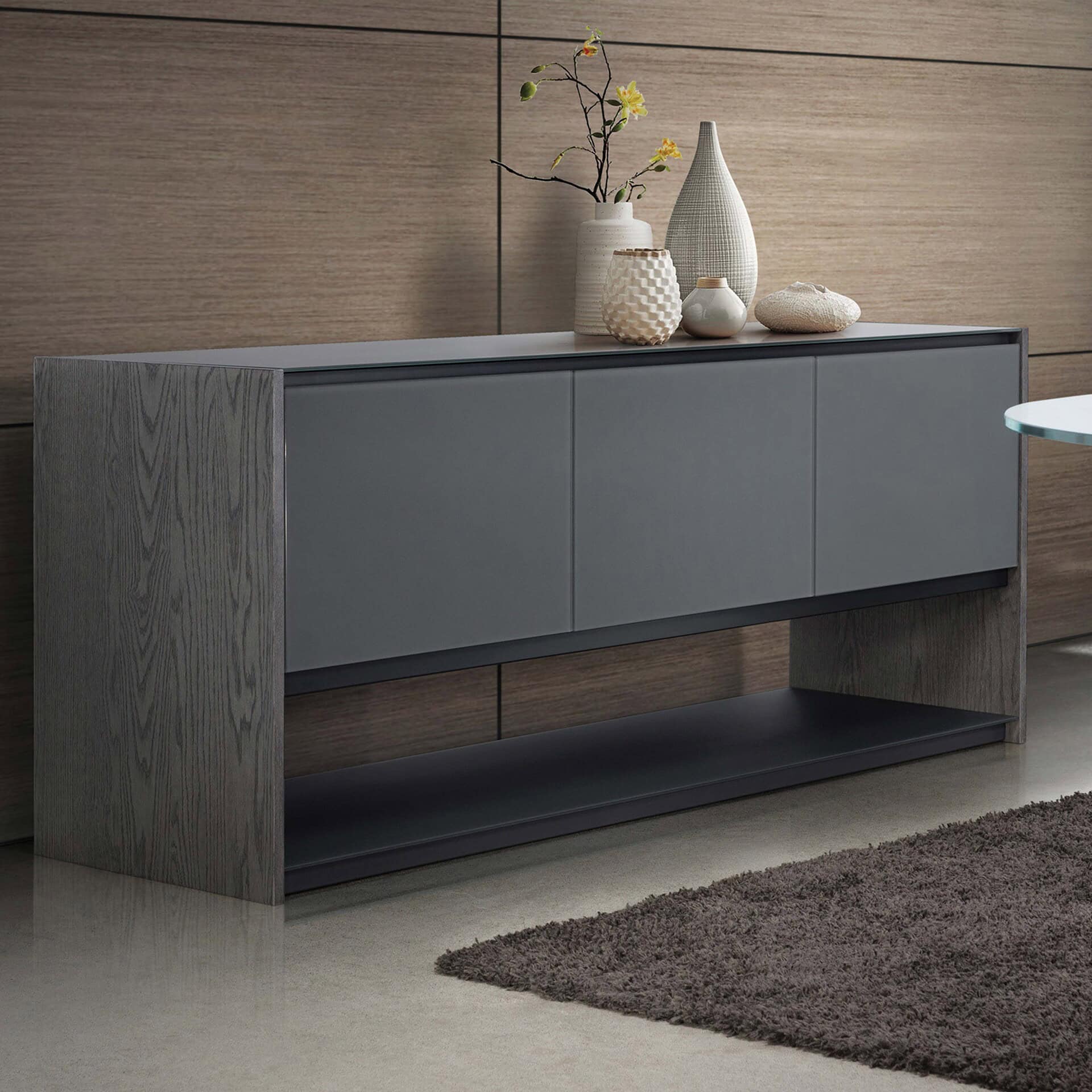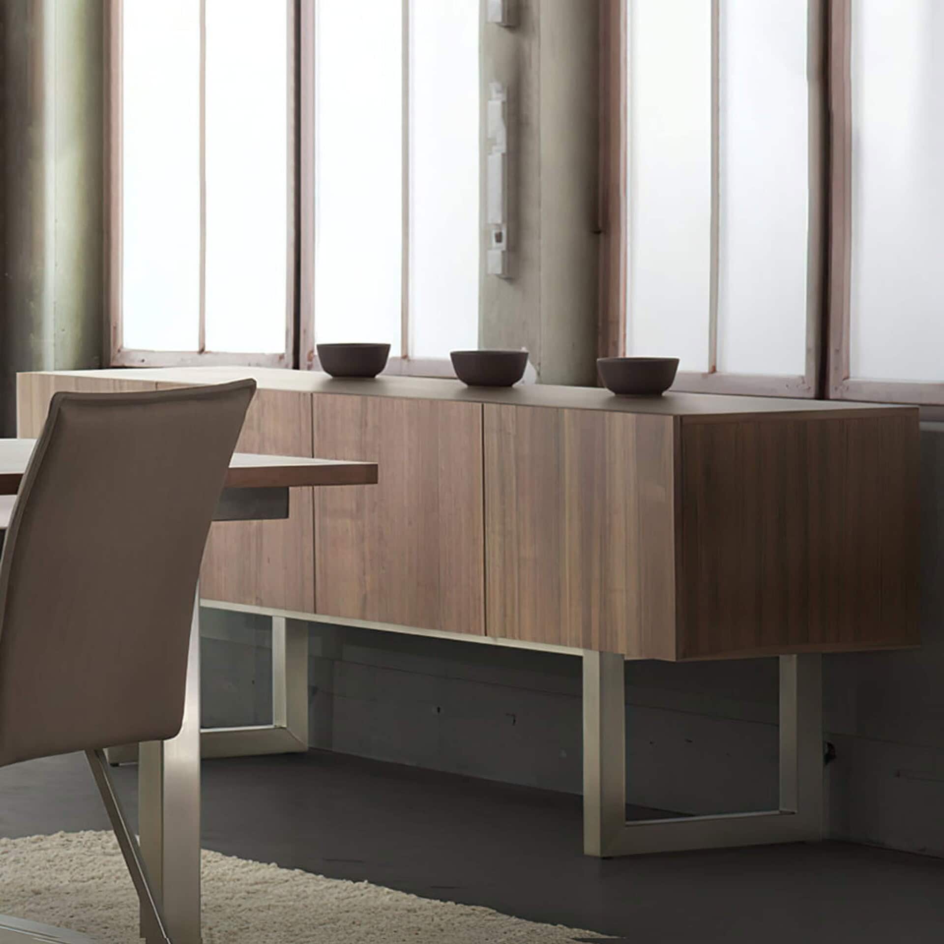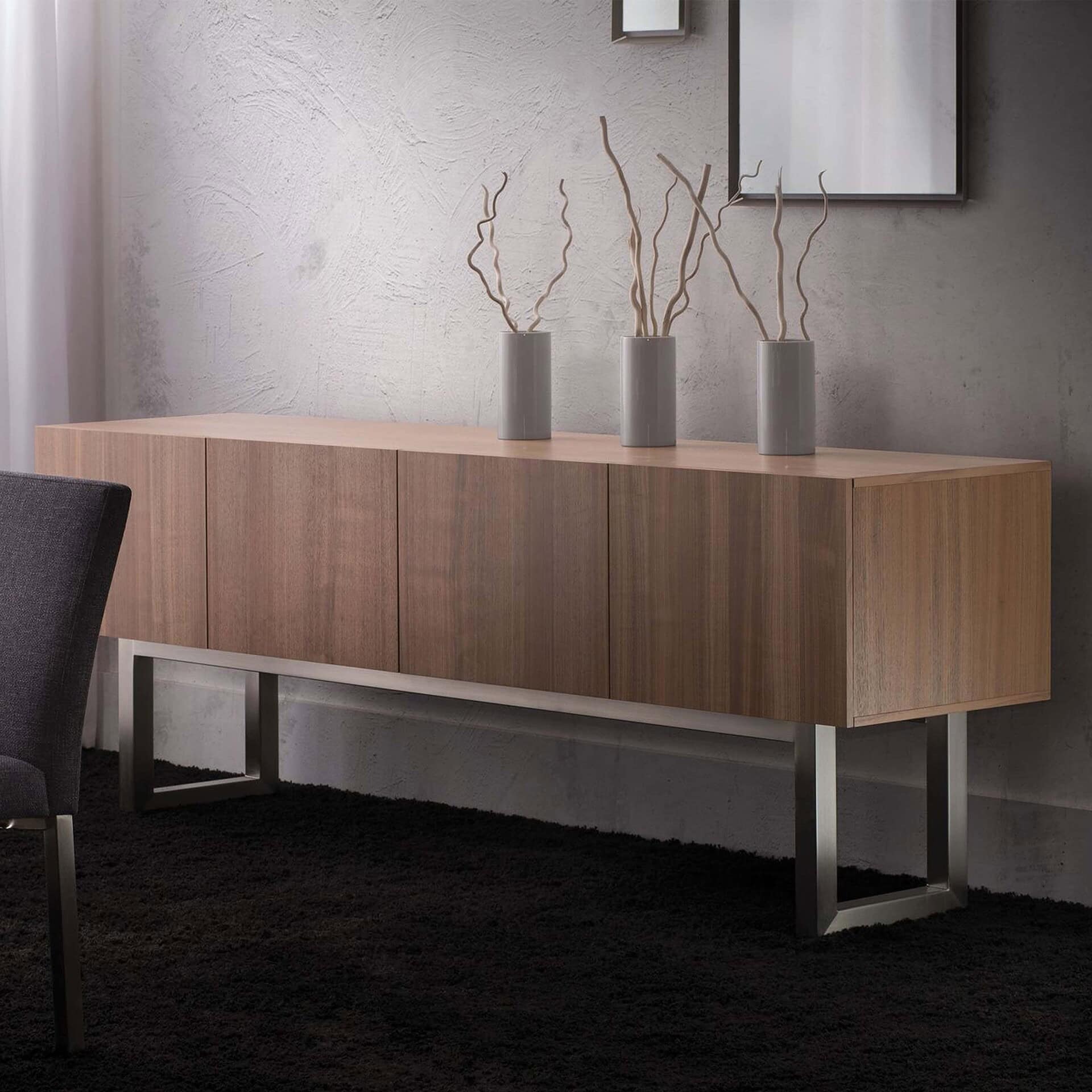 The Urbana Buffet buffet is built on a fully welded metal base and is available in a variety of powder and brushed steel finishes. The wood veneer casing on particle board is available in a range of water-based UV-cured finishes. The Urbana Buffet is designed to make a lasting impression with its elegant and modern styling. The minimalistic look pairs perfectly with any contemporary or classic decor, and the adjustable shelves allow you to customize the storage to fit your needs.