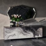 The modern Focus Crystalart sideboard features a combination of gorgeous CrystalArt beveled glass and shining metal.