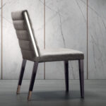 With its solid beechwood frame and luxurious finishes, this chair is a great addition to any home. Featuring opulent metal details adorning the back and rear legs in Superior, Chrome, Black and Shadow, the horizontal stitching on the back elevates and highlights Aston's modern style. An extensive range of leather and imitation leather covers as well as fabric covers are available for this chair, all of which provide soft, comfortable padding.