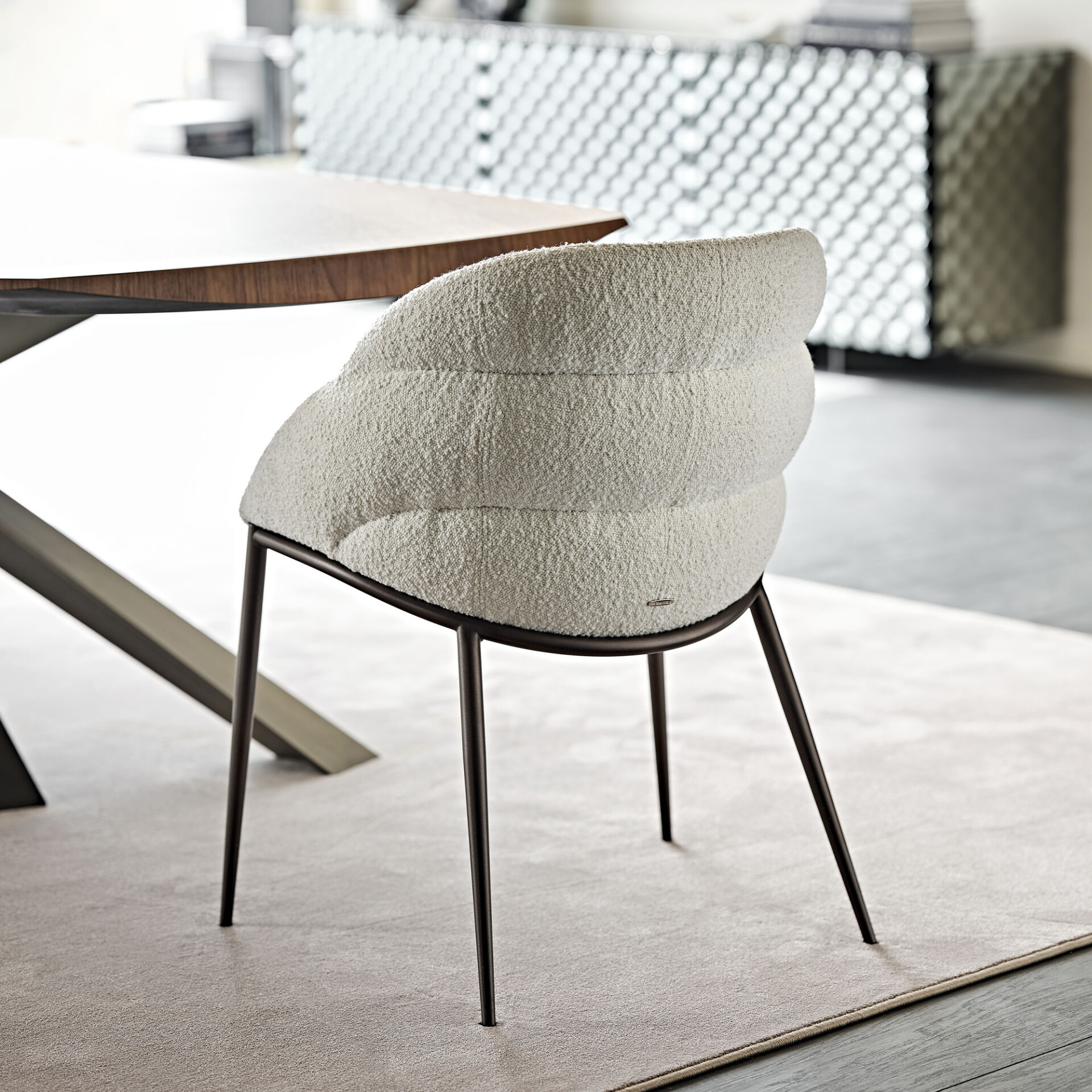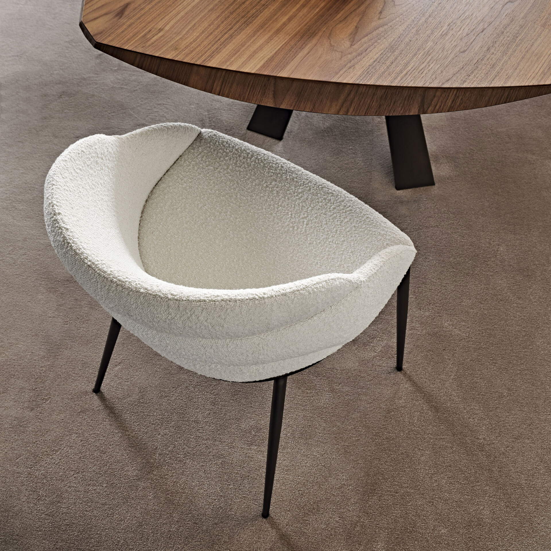 Available in both wood and metal base versions, Camilla offers exceptional versatility. Upholstered in fabric, micro nubuck, synthetic leather, or soft leather, the chair can be tailored to complement a wide range of interiors—from warm, organic spaces to sleek contemporary dining environments. Whether paired around a statement table or used as an accent chair, Camilla brings understated luxury to any room.