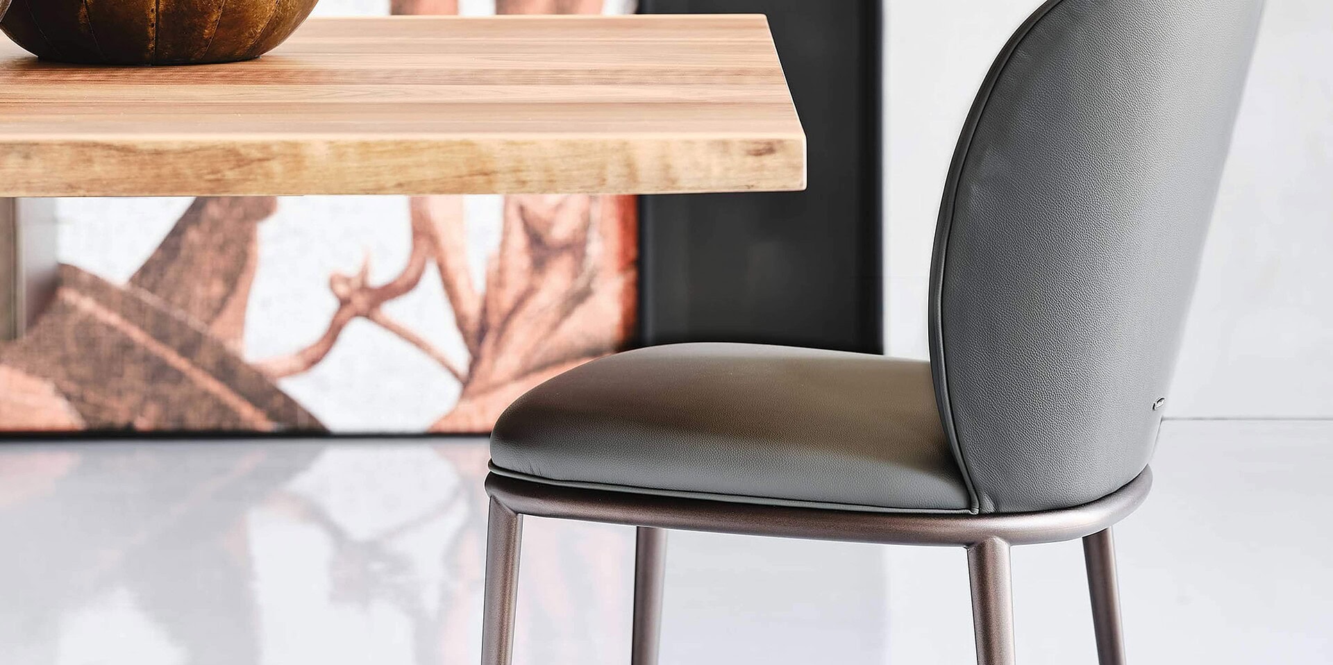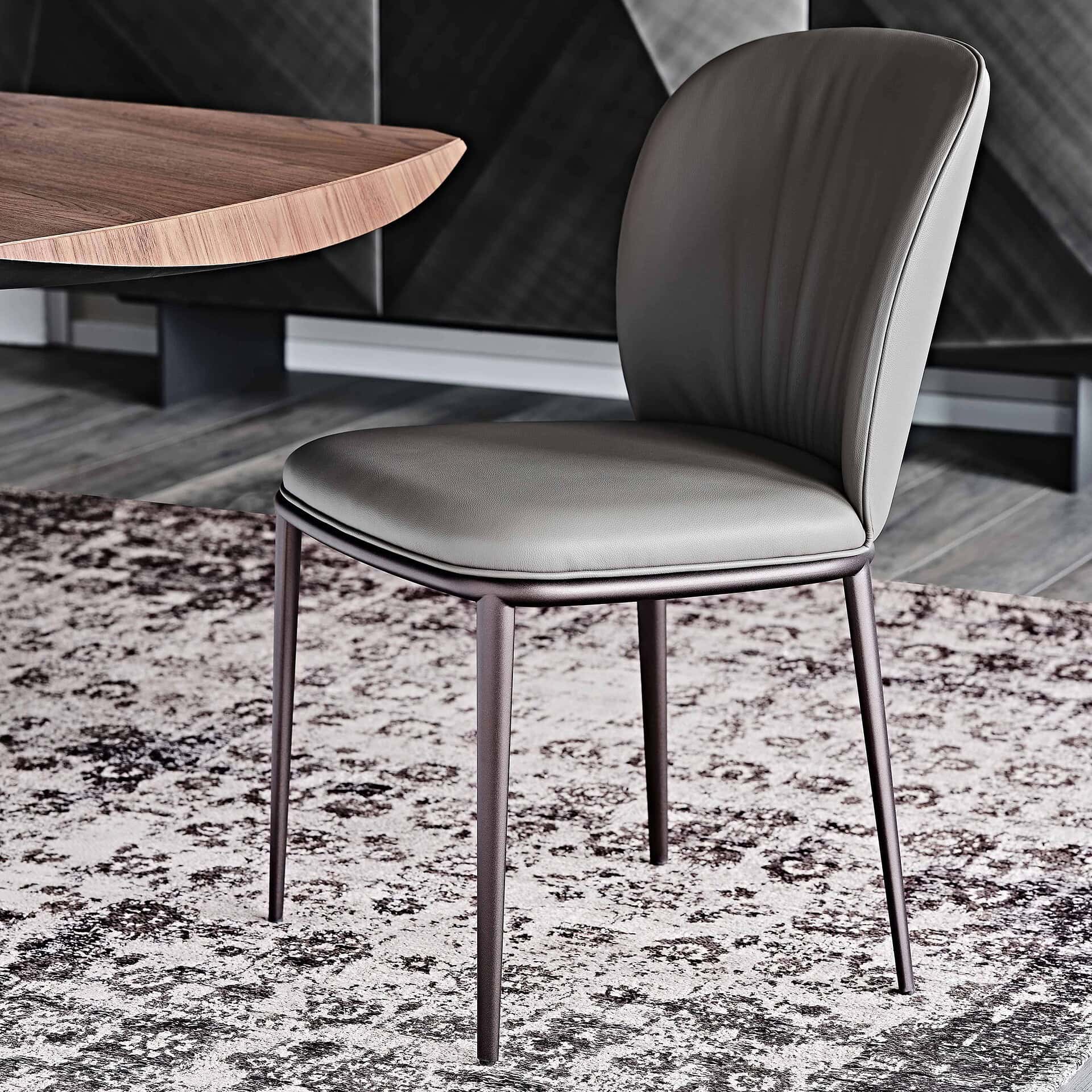 The Chris Chair belongs to the modern furniture family, characterized by roundish backs and wide seats. In addition to Chris, which has a smooth backrest, this range also includes Chrishell, which emphasizes shell shape with quilting on the back. A slender and brighter look can be achieved with steel legs, which stand out for their natural wood grain.