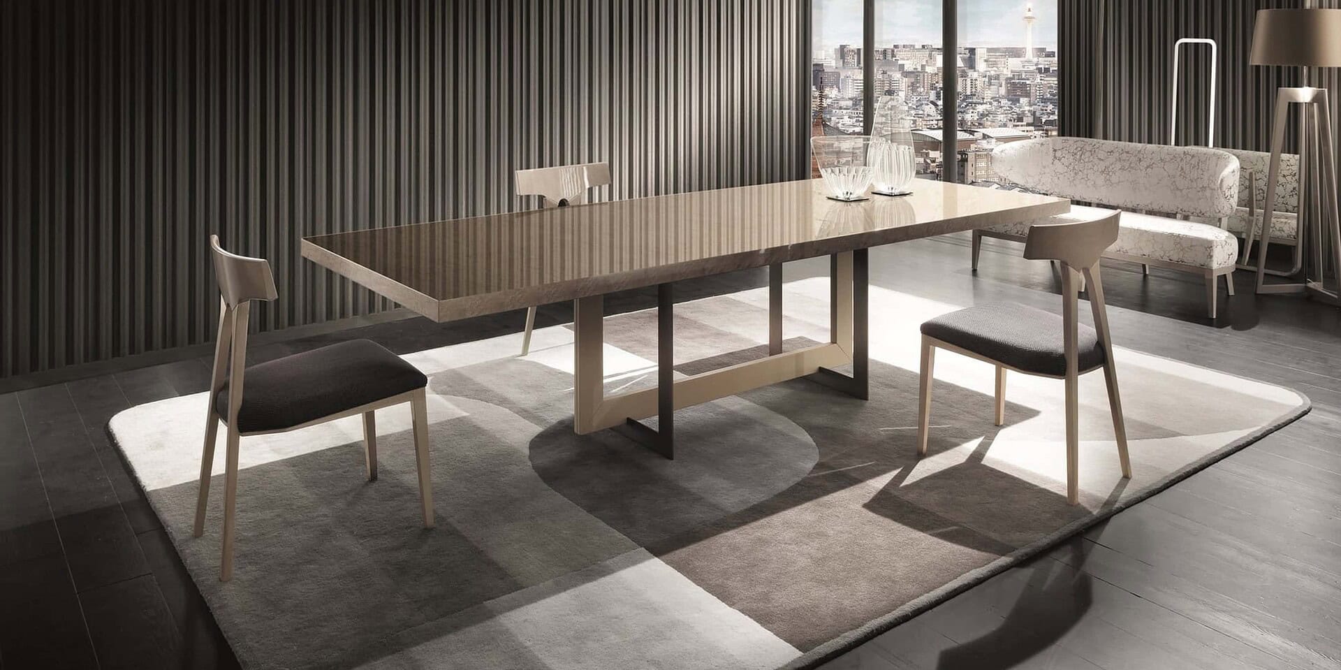 Designed to resemble a pair of compasses, the chair's rear legs have a distinctive contemporary appeal and a dynamic look that give it a distinct contemporary appeal. It is evident that the Flamingo frame is made of solid beechwood, which gives the frame a unique character that highlights the quality of the wood. We offer a wide range of covers, including fabrics, leathers, imitation leathers, and a variety of other materials.