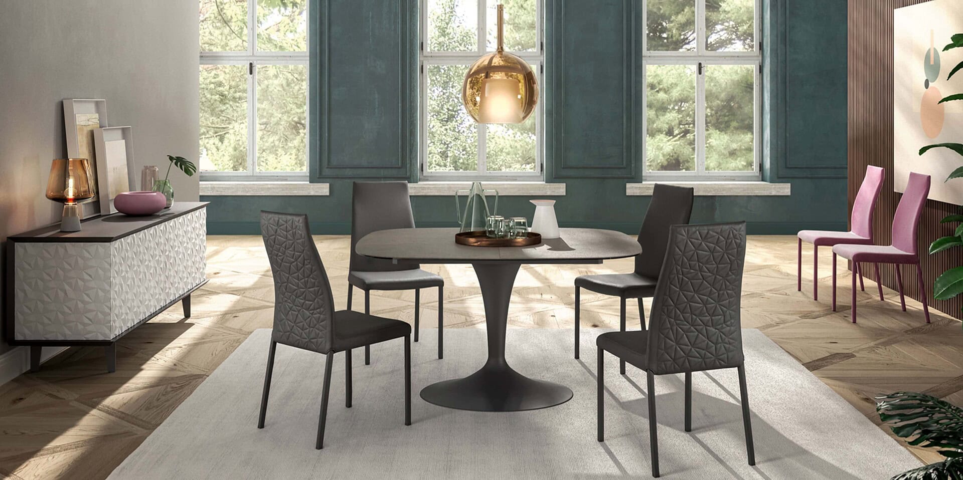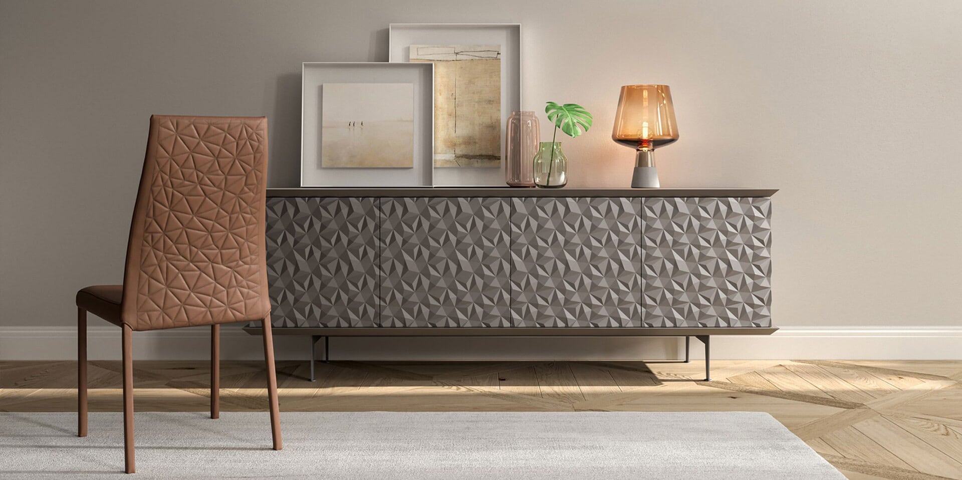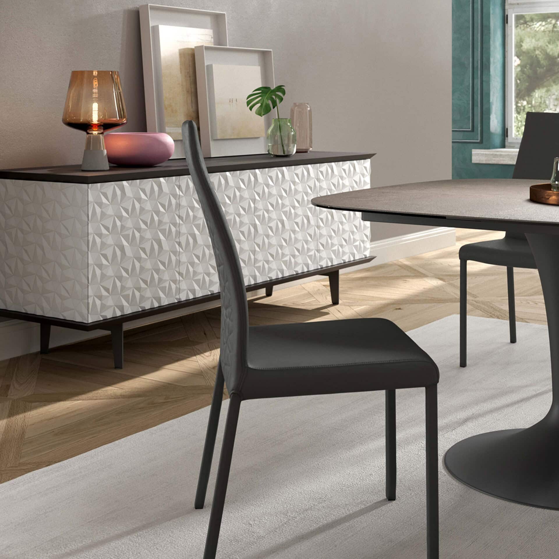 Blitz and style with Ozzio Italia's Blitz Plus Dining Chair, a beautifully crafted piece with geometric elements.