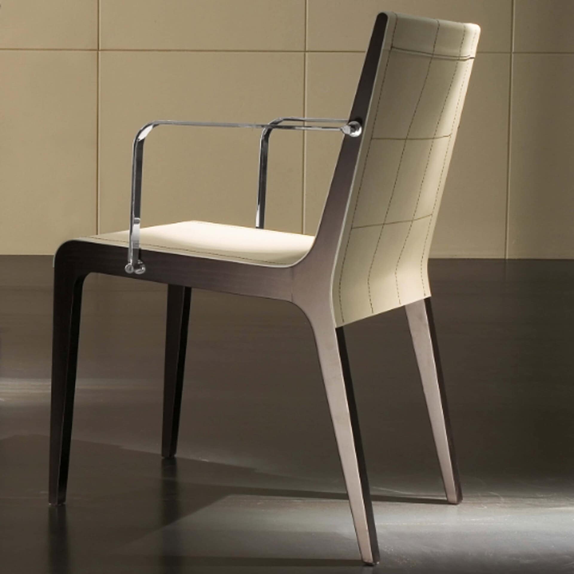 The Tosca Chair is a refined and modern design, made exclusively with leather upholstery. It stands out for the elegant visible stitching, which gives it a distinguished look. The chair is also available in the version with armrests. Tosca is an irreplaceable piece of furniture that can easily enhance any kind of setting.