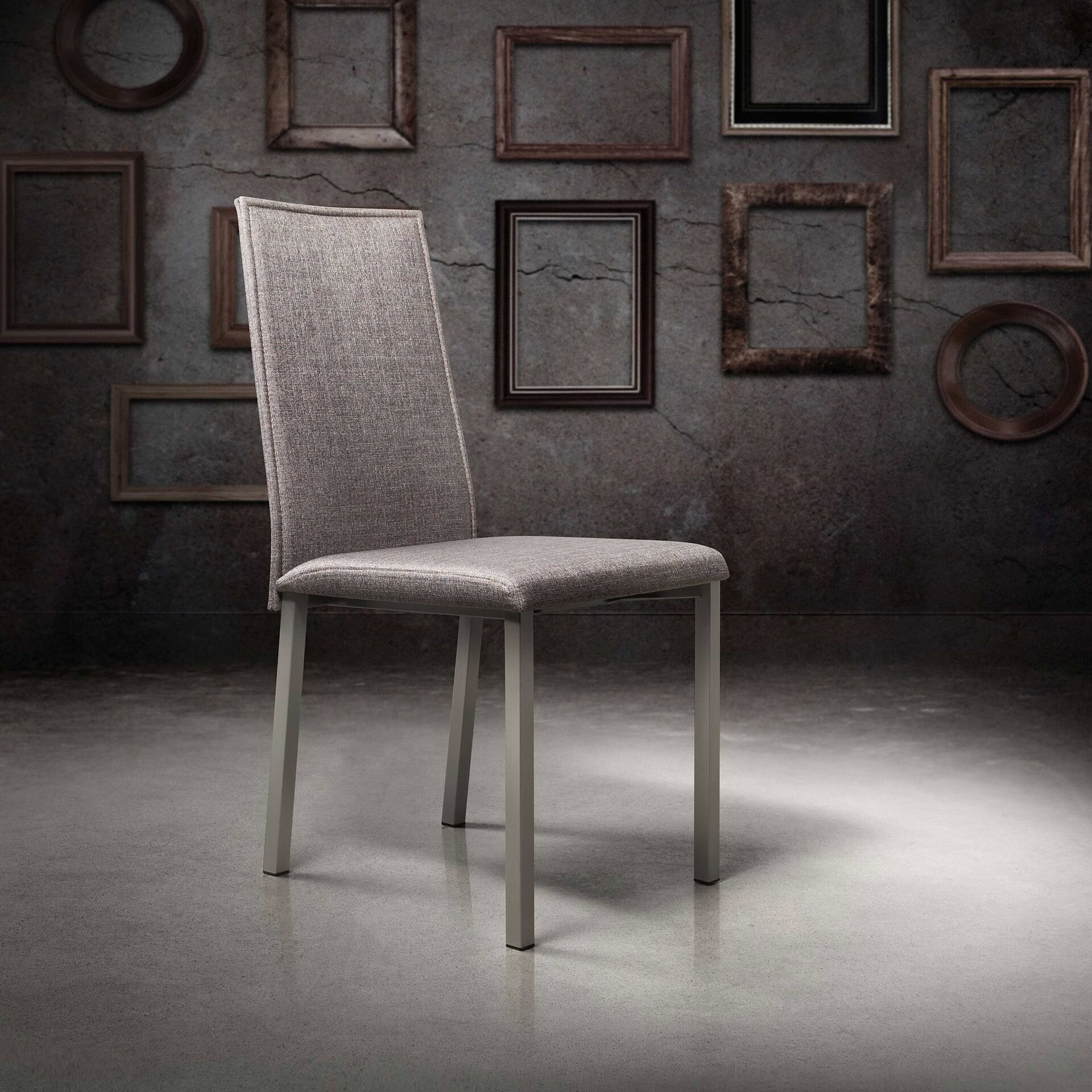 Upholstered dining chair with modern design and comfortable gray fabric. Perfect for contemporary di.