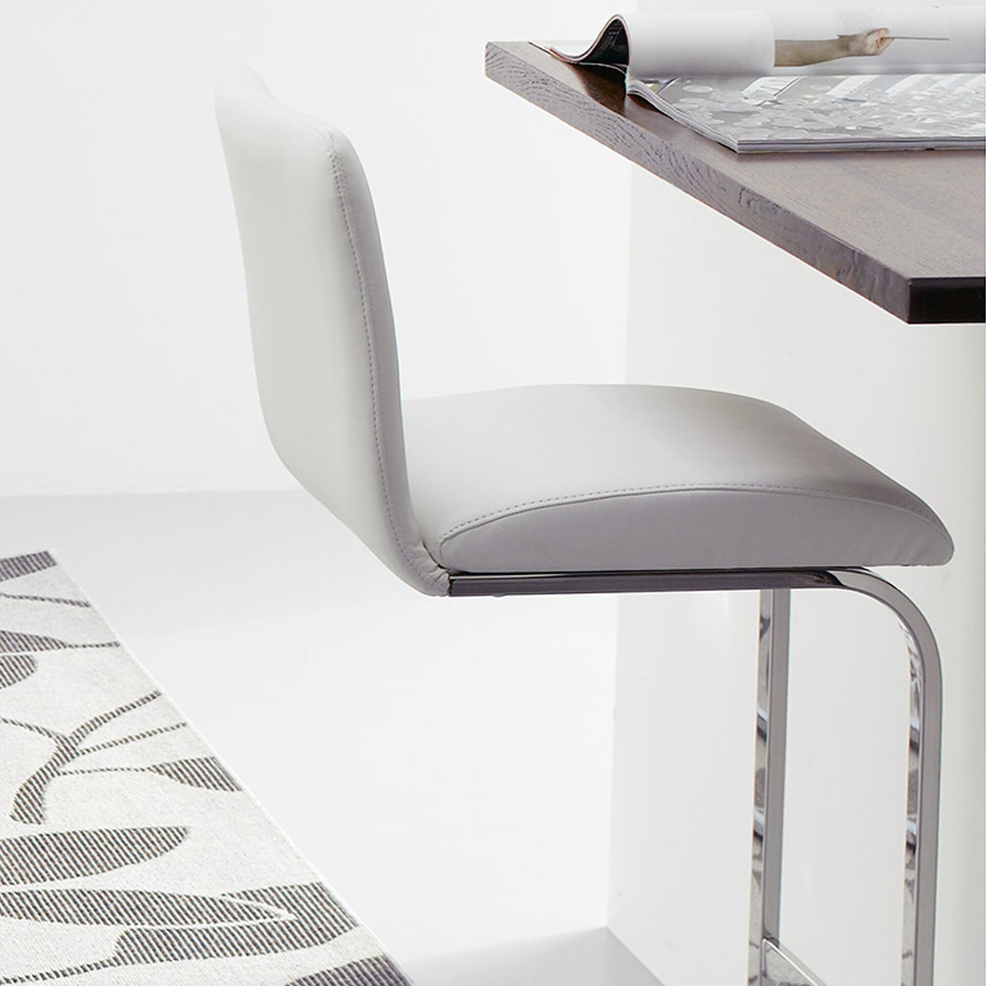 This simple, smart and elegant Peressini Lisa Fix Bar Stool is an example of genuine Italian style and will allow you to create the cosmopolitan luxury of an Italian wine bar in your own home. With two rounded square seat pads and a gravity-defying cantilever base, the Lisa is indulgent and soft. It is available in two metal finish options: chrome and satin chrome. There are a wide variety of fabrics and leathers that can be used on the Lisa, as well as an even wider variety of colors.